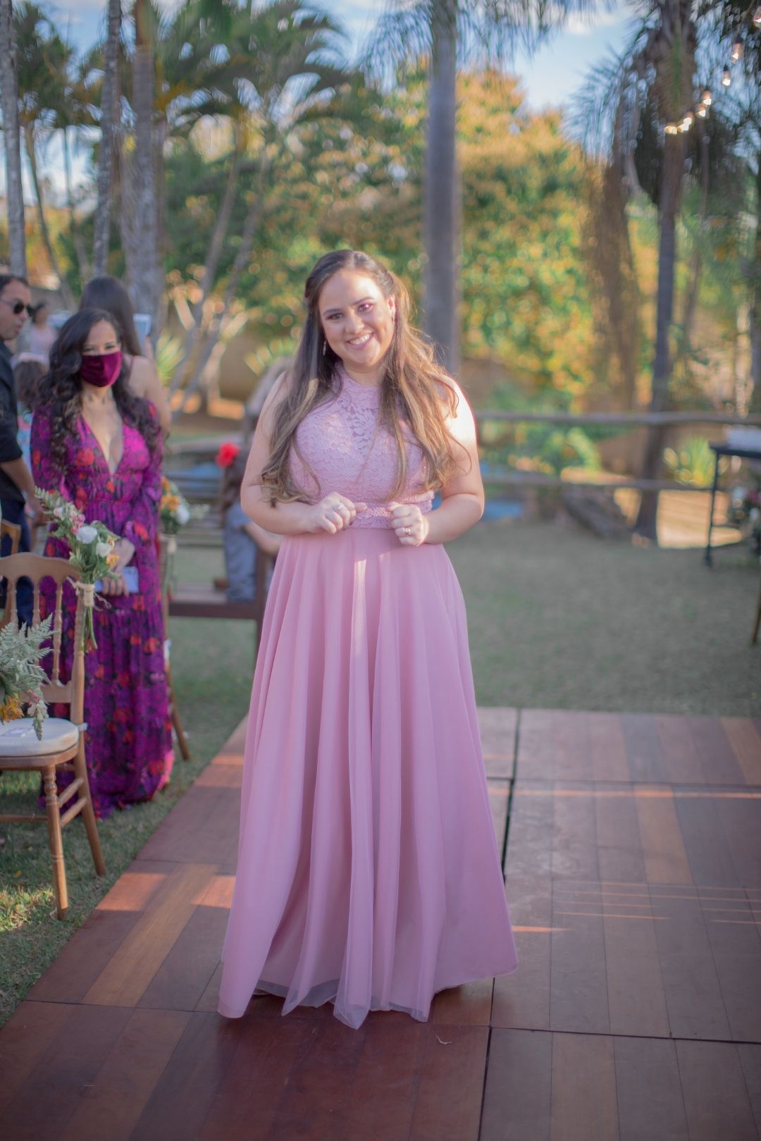 Rafaela e Bruno se conheceram por meio de uma amiga em comum e estão juntos desde o primeiro encontro. Quando ficaram noivos sabiam que o casamento tinha que ser leve e com a cara do casal. Foi difícil driblar o nervosismo de não saber se o evento aconteceria, por causa da pandemia, mas quando isso foi definido, todo o resto de revolveu também. A decoração do casamento não seguiu nenhuma proposta específica, apenas o que combinava com o casal.