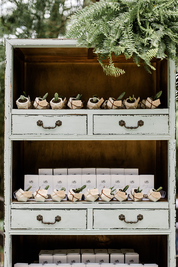 Nesse ambiente integrado e super descontraído também estavam as lembrancinhas, que não eram poucas!  Deliciosos brownies da São Brownie, mini cactos em vasinhos e velas artesanais da Amor Criativo. Quanto carinho os dois tiveram com os convidados, né?