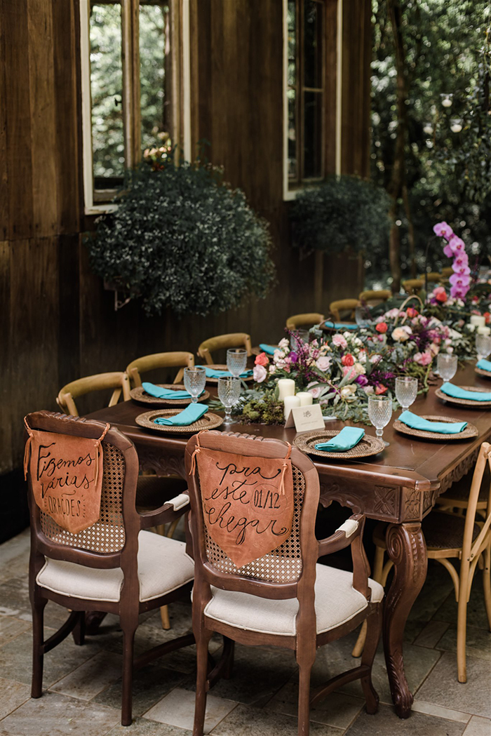 A Marcela e o Samuel tem uma pegada boho e folk beeeeem forte. Lógico que a identidade visual e a decoração tinham que ter a a personalidade dos dois em todos os detalhes, A decoração boho tinha tudo a ver com leveza, com flores e folhagens numa pegada bem orgânica. A Bohemian Village Decor interpretou tão bem o sonho dos noivos que a Marcela não conseguia se conter de emoção, principalmente quando viu a mesa do bolo!