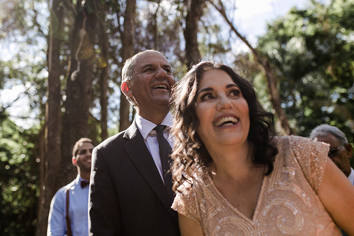 Faltando umas duas horas antes da cerimônia, caiu o maior pé d’água e fez-se o impasse de ter que escolher entre o plano A ou plano B. A Lorena acreditou no plano A e convenceu todos que ia dar tudo certo. E não é que, pouco tempo depois, abriu o sol? Foi uma benção muito especial!