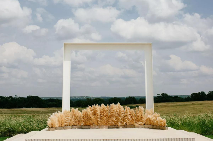 O minimalismo também pode, e deve, estar presente na sua cerimônia, ao escolher um cenário simples, como um arco feito com plantas ou uma estrutura geométrica simples e elegante.