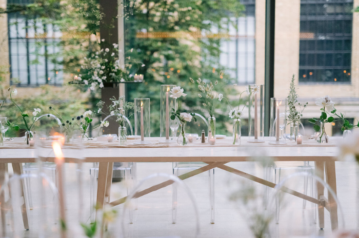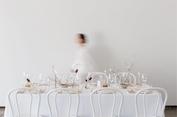 Podemos pensar no minimalismo como uma maneira de limpar a desordem, eliminar os enfeites e ser muito intencional sobre cada peça escolhida para incrementar a decoração que fará parte do seu grande dia.