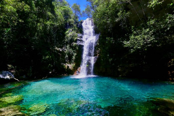 Localizada na Chapada dos Veadeiros, Goiás, esta cachoeira possui um cenário digno de filme e que você consegue acessar através de uma trilha de mais ou menos 5 km.