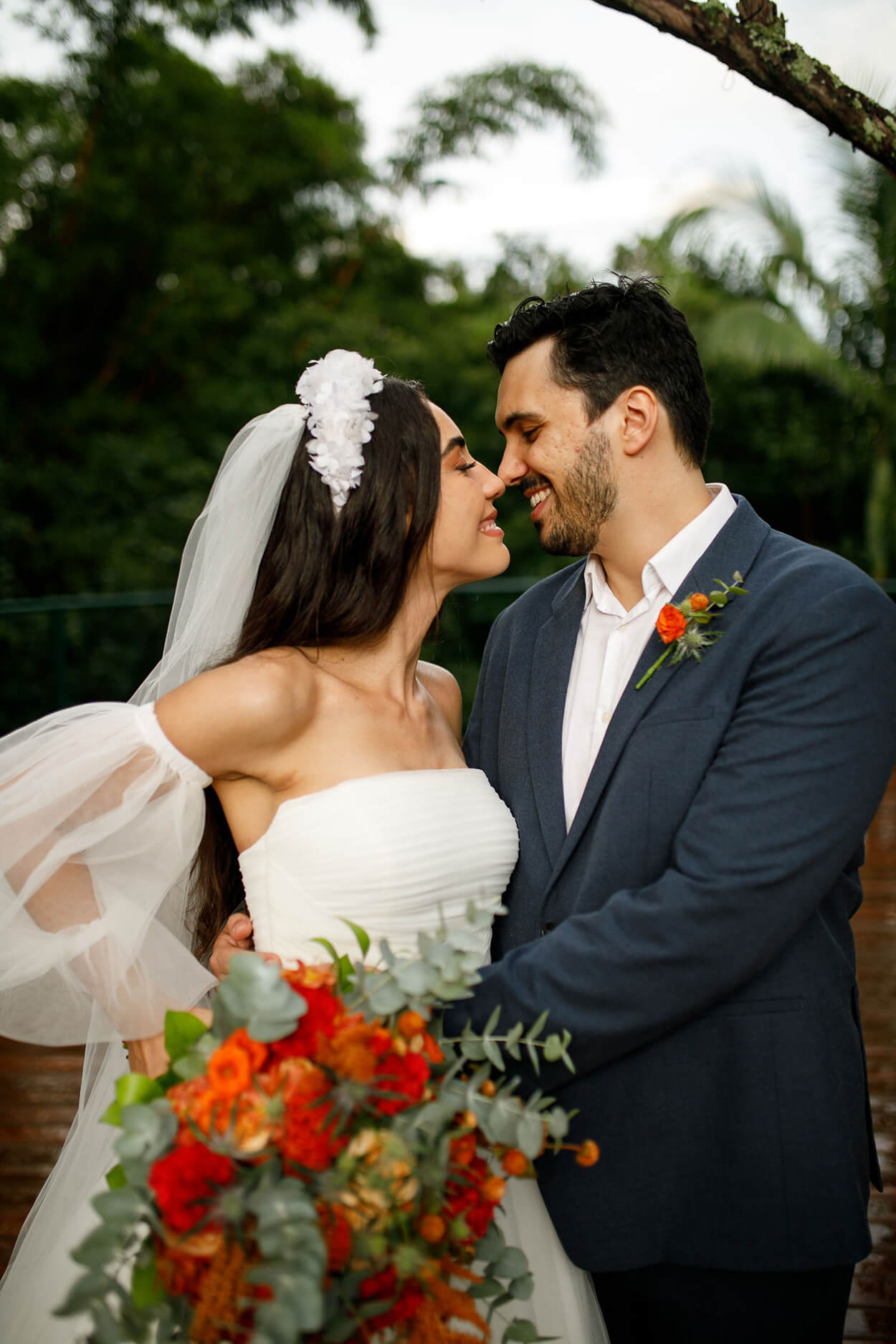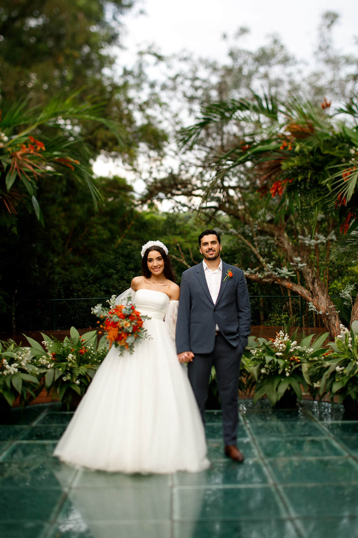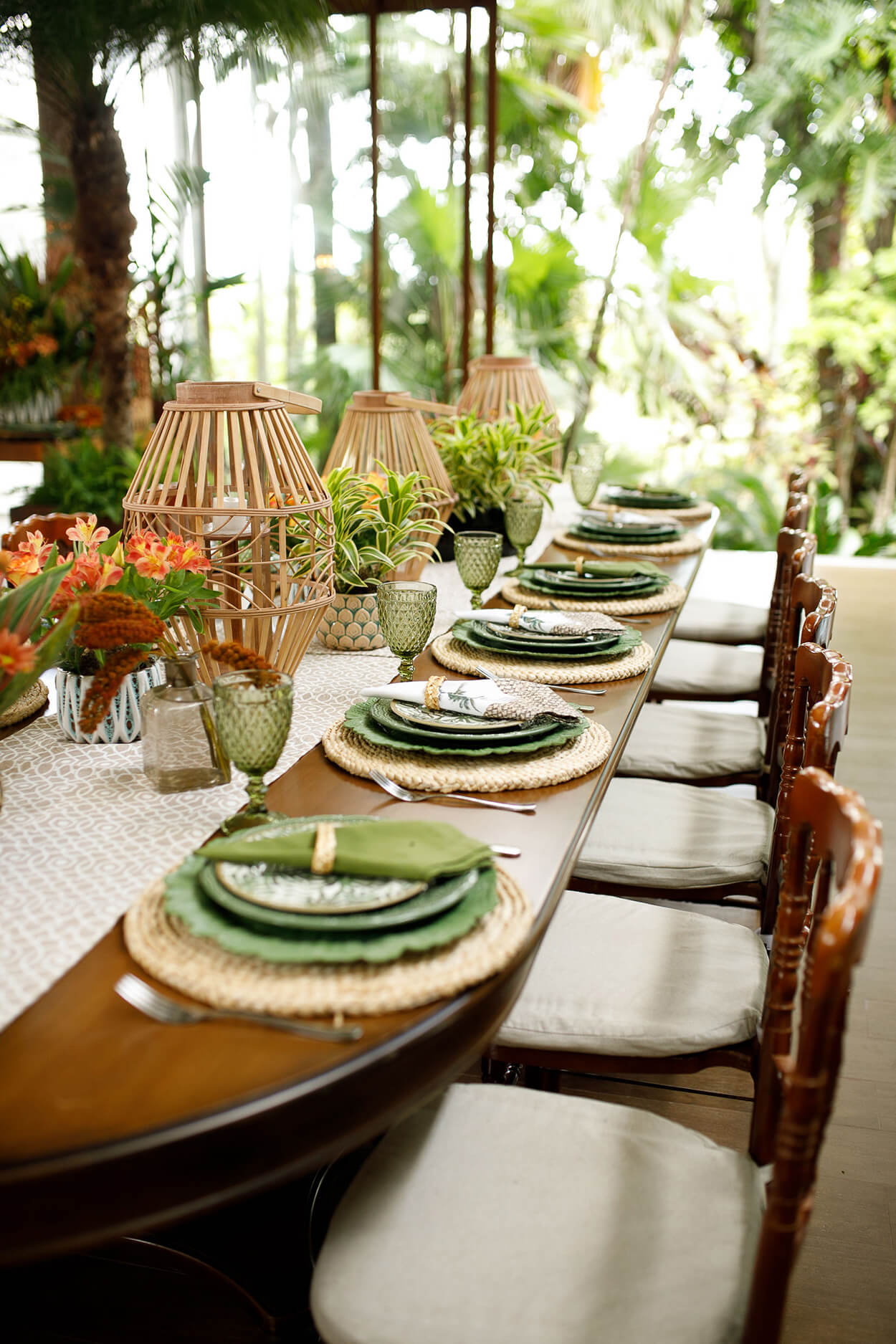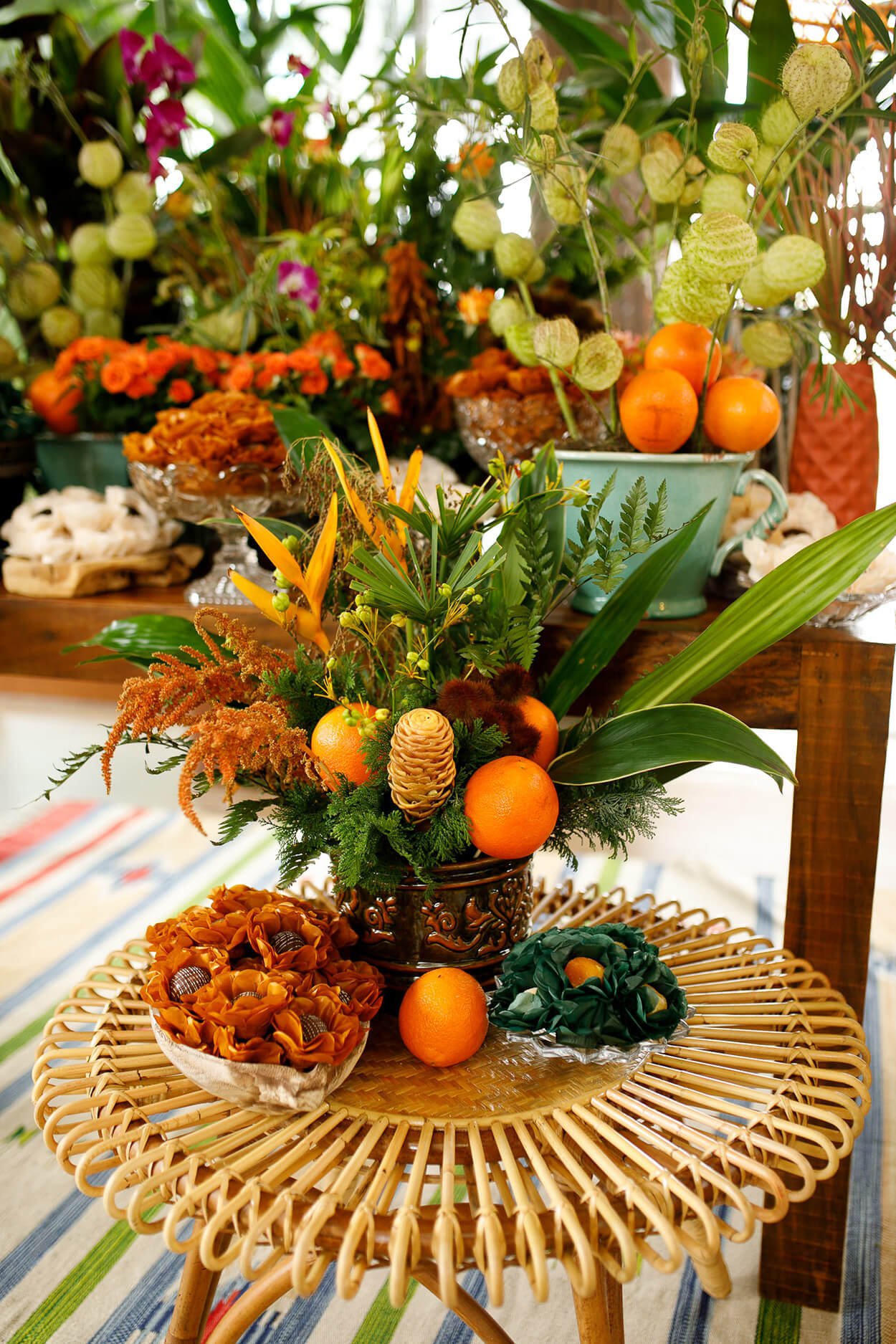 A decoração é nitidamente inspirada no tropicalismo, com o típico mix orgânico de madeira, frutas, flores e cores exuberantes. Claro, quando falamos em decor tropical, logo pensamos nas areias clarinhas e no som das ondas quebrando. Mas, esse casamento é a prova de que é possível sim adaptar as suas referências.