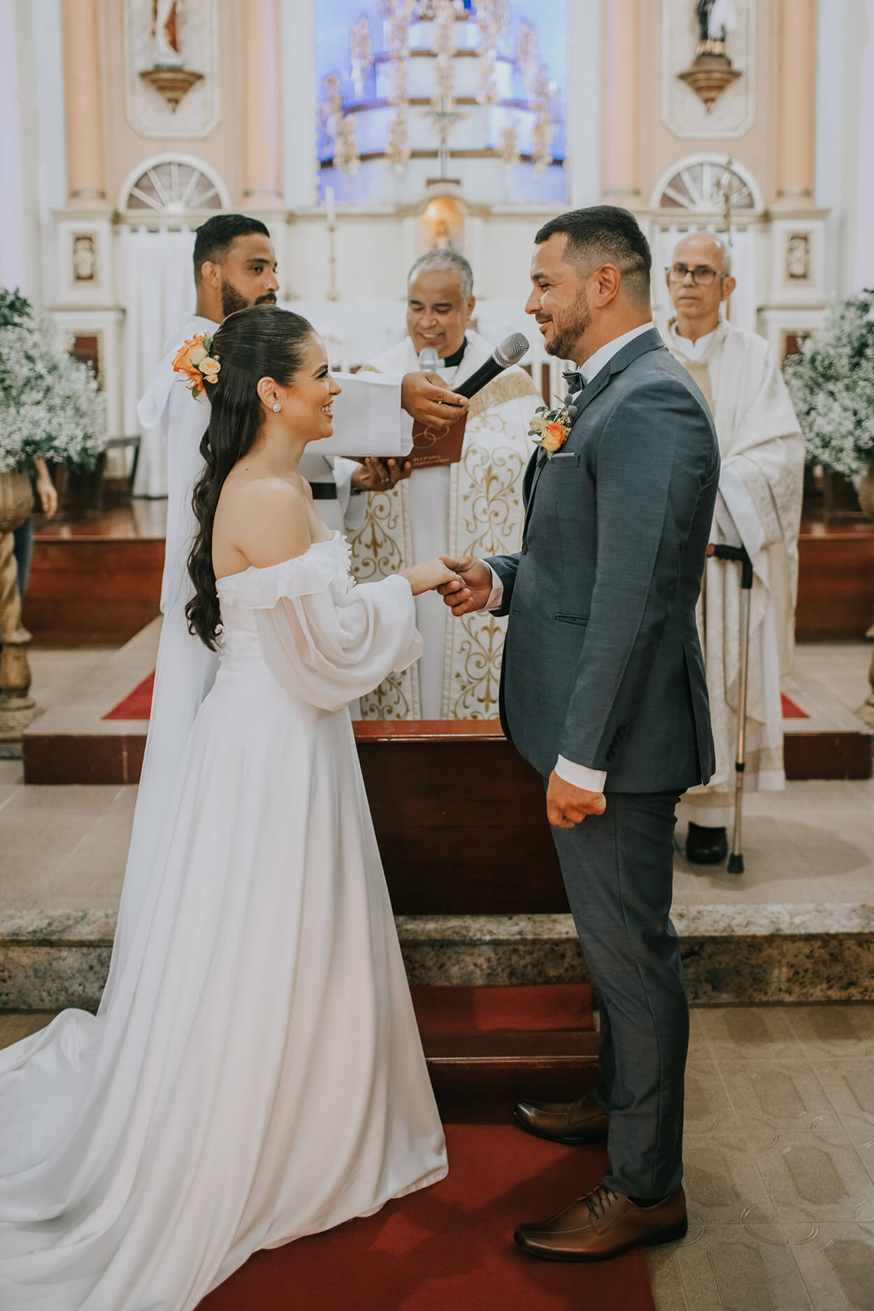 A Mari e o José fizeram questão de que cada detalhe fosse carregado de significado, então nada foi escolhido apenas por tendências. Como os dois são devotos de Nossa Senhora da Conceição, a igreja já estava decidida desde o começo.