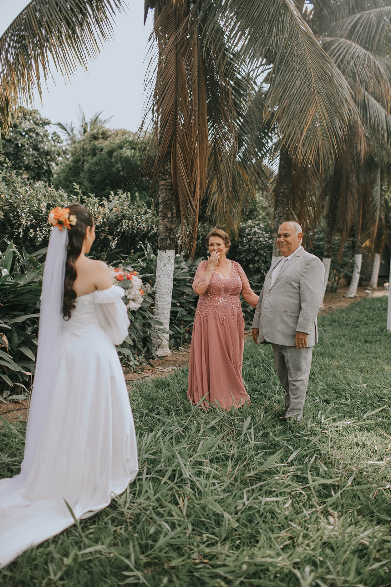 “Sou filha caçula, a quarta e última a se casar. Meus pais já são idosos, 67 e 68 anos. Minha mãe não quis se arrumar comigo, acredito que por toda essa questão da emoção. Então decidi fazer o first look com os dois e ver a reação deles, e foi a coisa mais linda.”