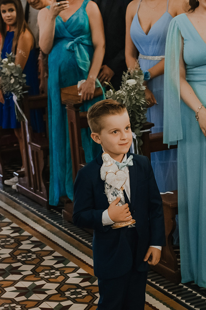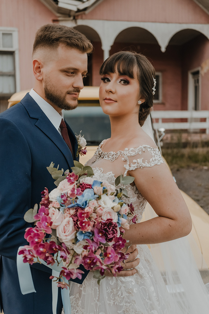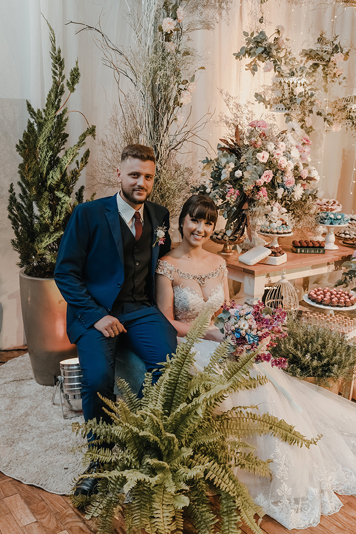 No final, ela uniu dois estilos na decoração: vintage e clássico em tons de azul serenity, rosé e marsala. E para deixar tudo ainda mais especial, a mãe da Isabella é artesã, então, o porta aliança foi confeccionado carinhosamente por ela.