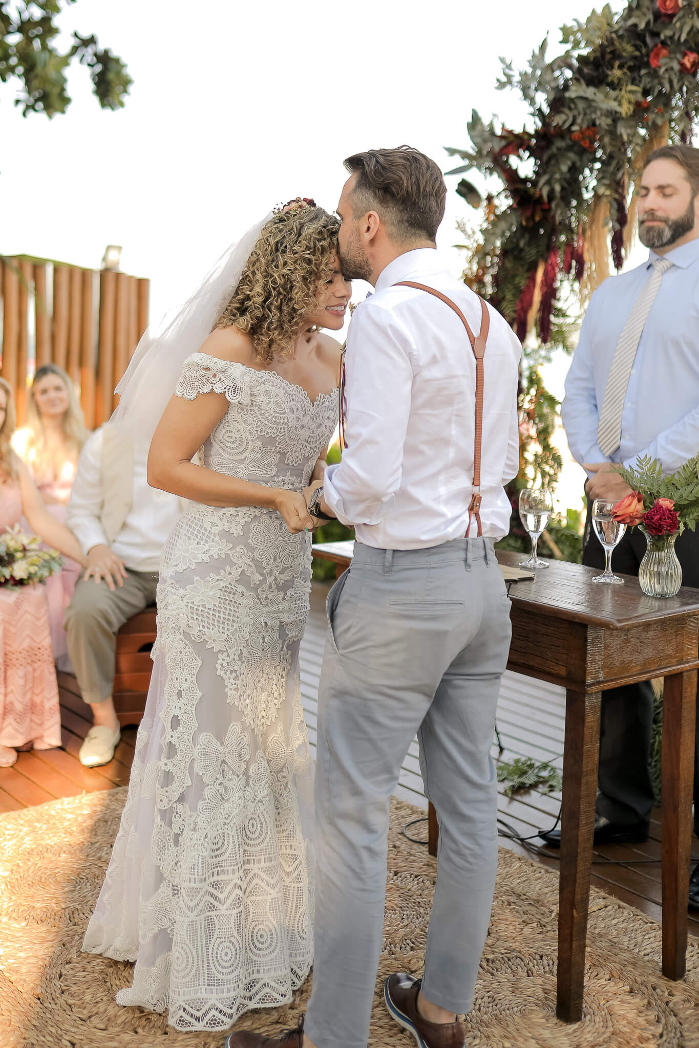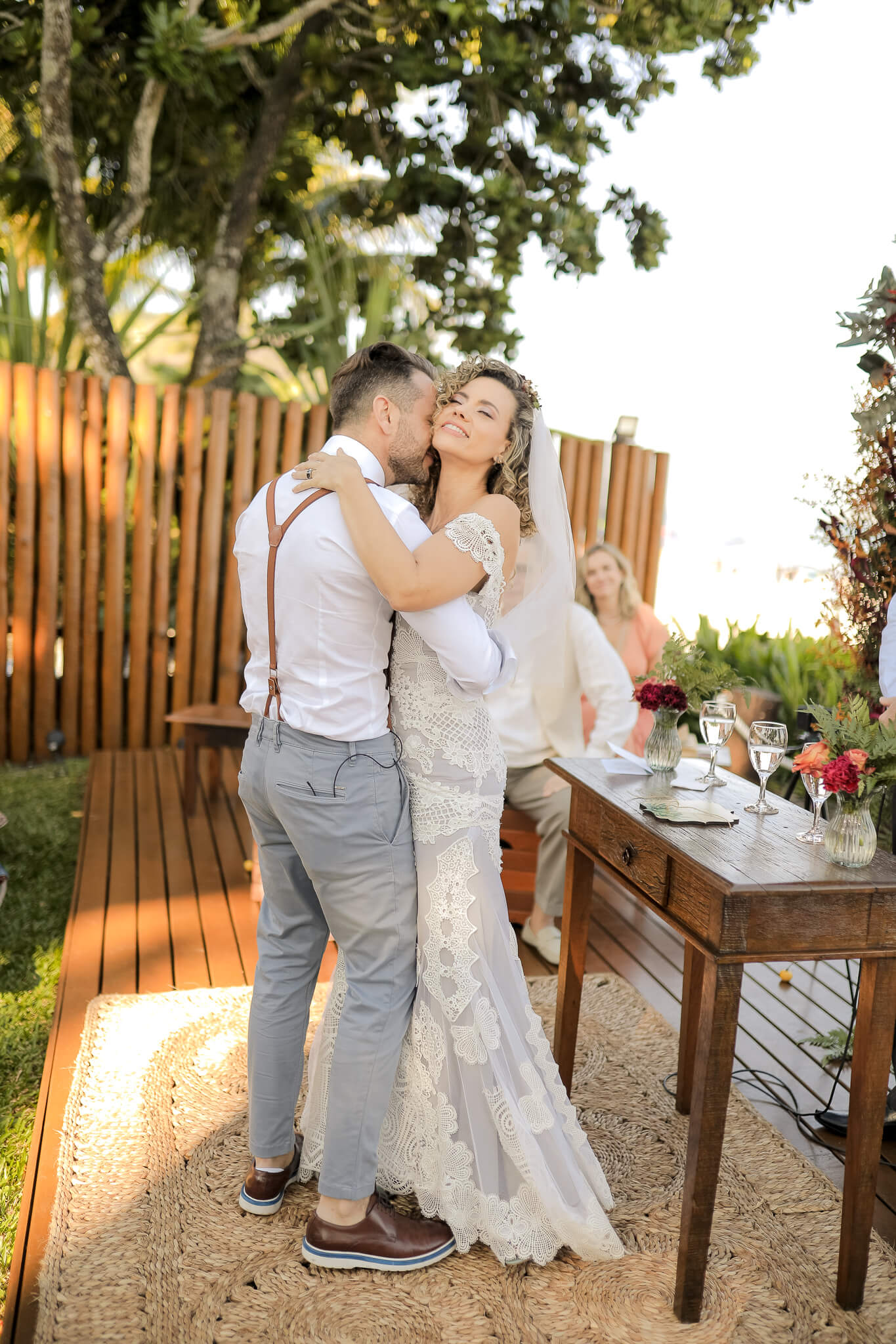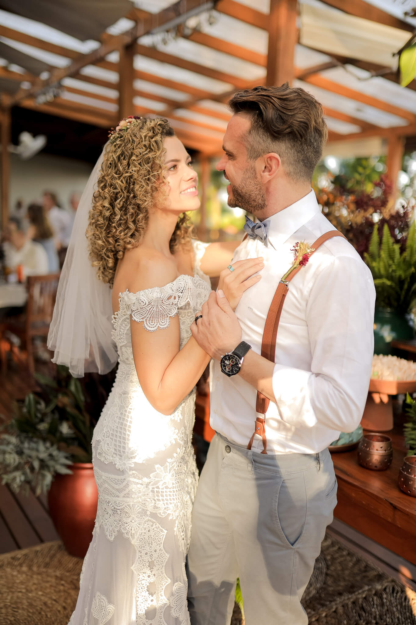 Quando o grande dia chegou, os noivos celebraram o amor ao lado de trinta convidados queridos em um wedding weekend. ”Pudemos conviver, conversar, dançar e aproveitar com todos de quinta a domingo, tendo um aproveitamento muito maior desse momento juntos”.