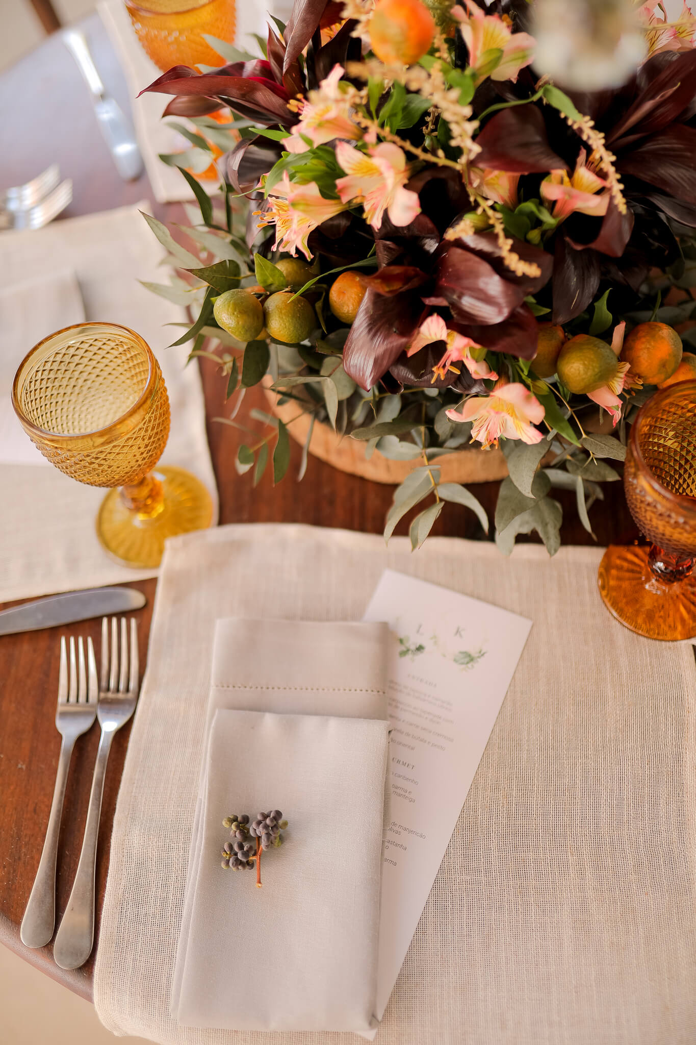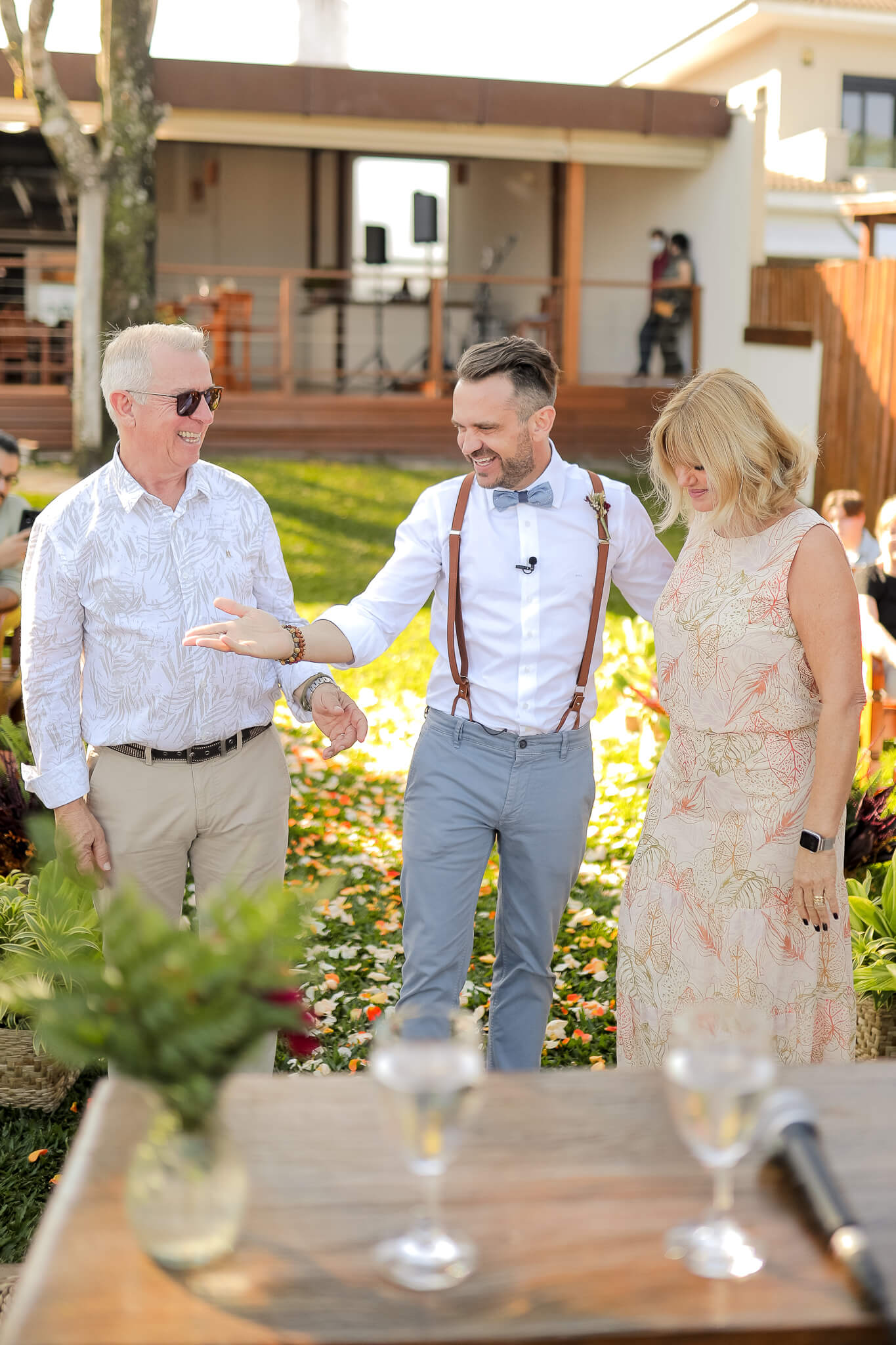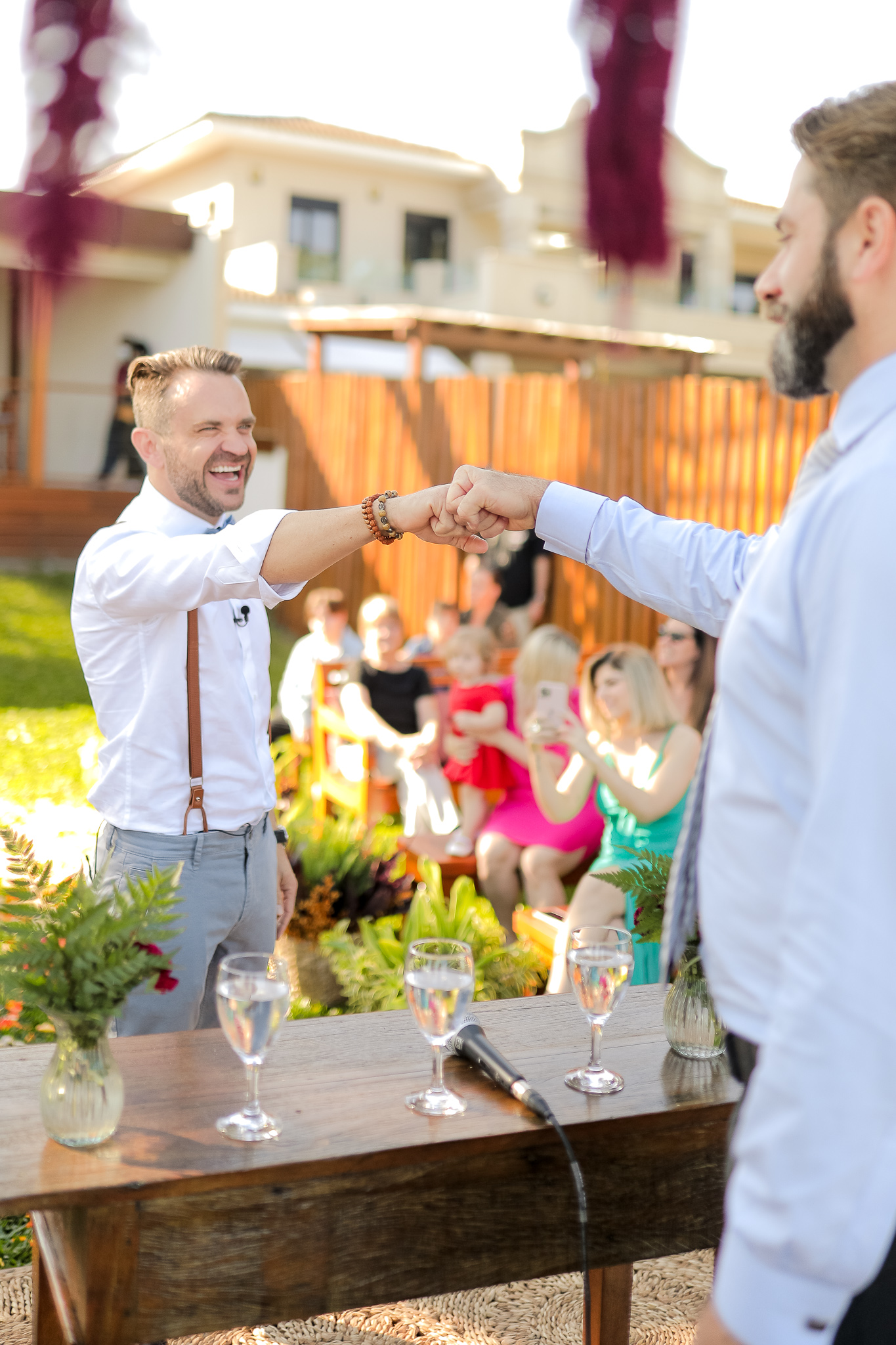 Quando o grande dia chegou, os noivos celebraram o amor ao lado de trinta convidados queridos em um wedding weekend. ”Pudemos conviver, conversar, dançar e aproveitar com todos de quinta a domingo, tendo um aproveitamento muito maior desse momento juntos”.