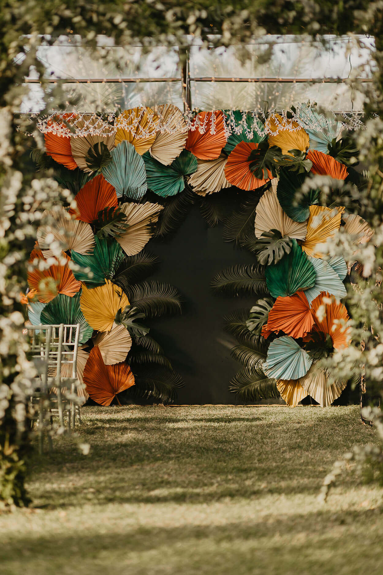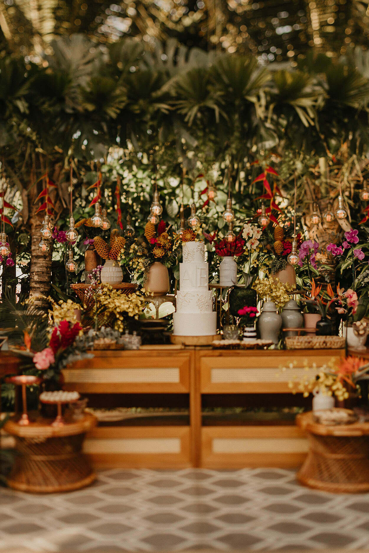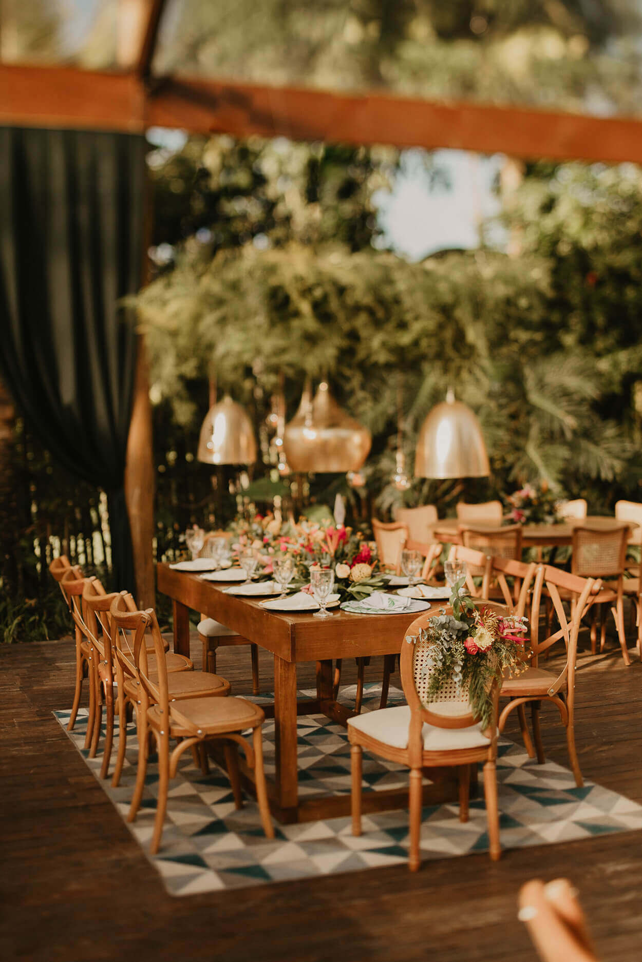A união de flores, frutas e cores ganhou o nosso coração! A composição com muita madeira e toques em dourado ficou encantadora. Até o bar ganhou mais personalidade com as videiras, mas esse backdrop de folhas secas coloridas foi o que mais chamou a atenção da nossa redação.