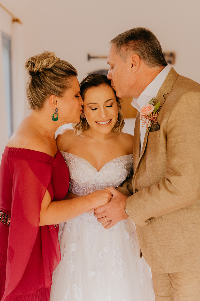 A Ana Laura aproveitou uns minutos antes da cerimônia com seus pais e com sua madrinha. Depois disso, ela foi em direção ao amor da sua vida!