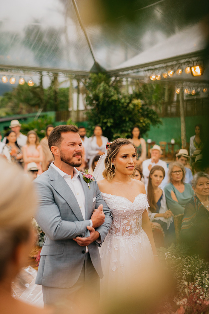 “A cerimônia para mim foi o momento mais inesquecível, ver todos os amigos e familiares reunidos, celebrando o amor com uma decoração incrível, foi simplesmente mágico”.
