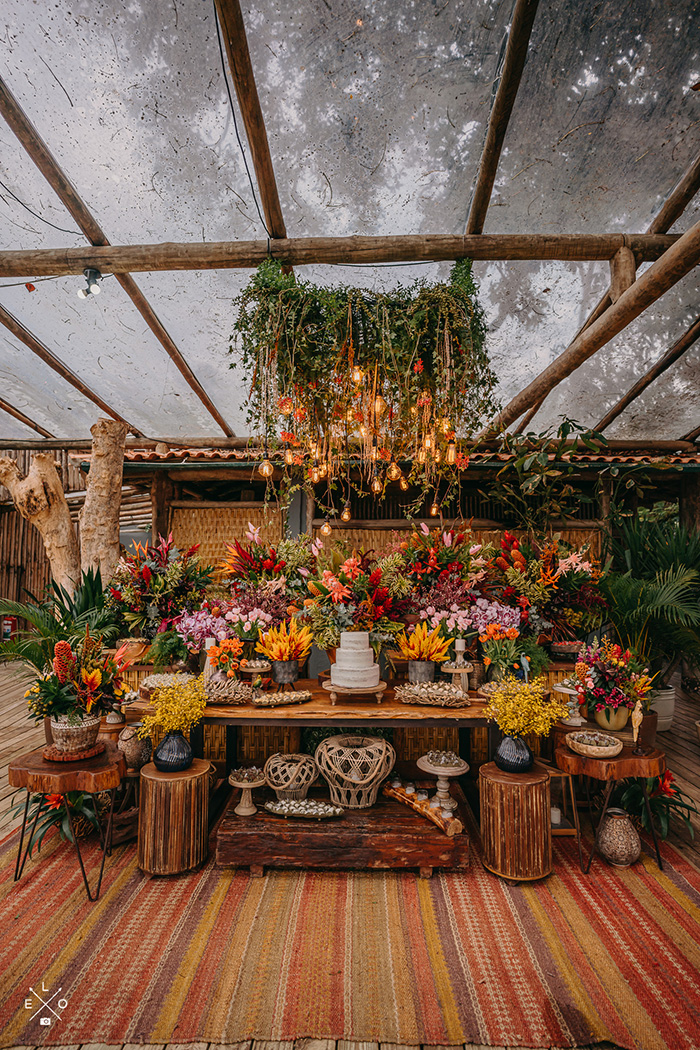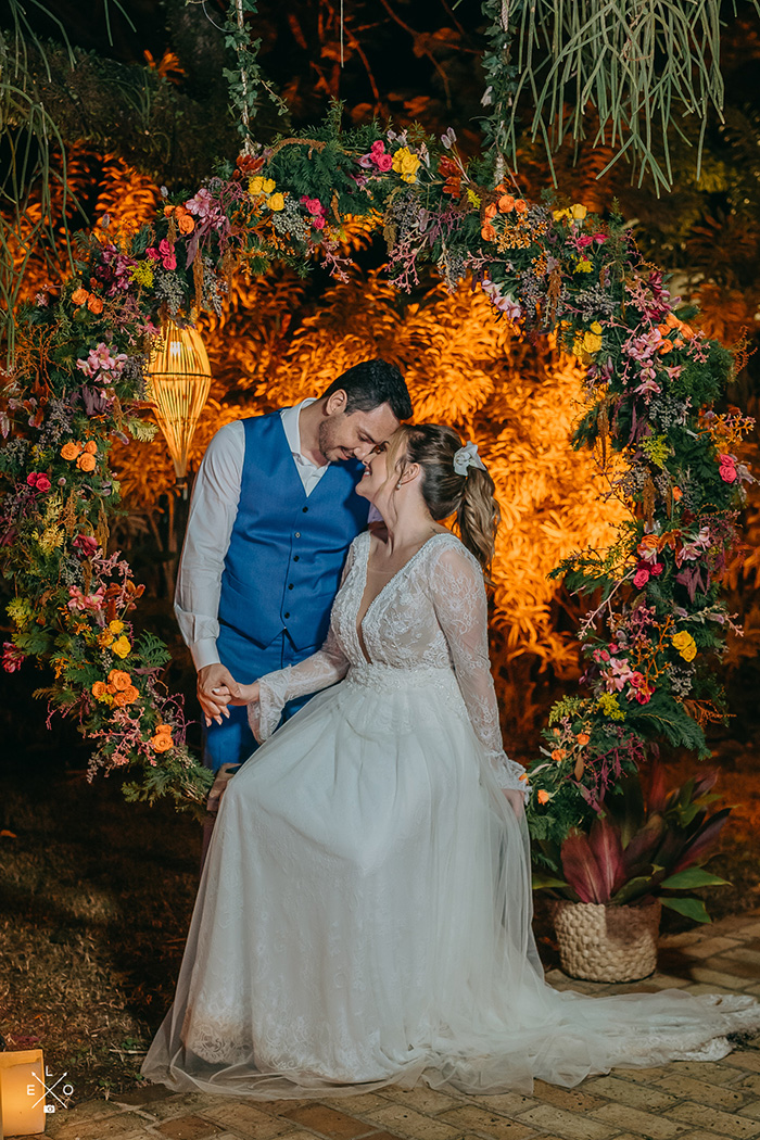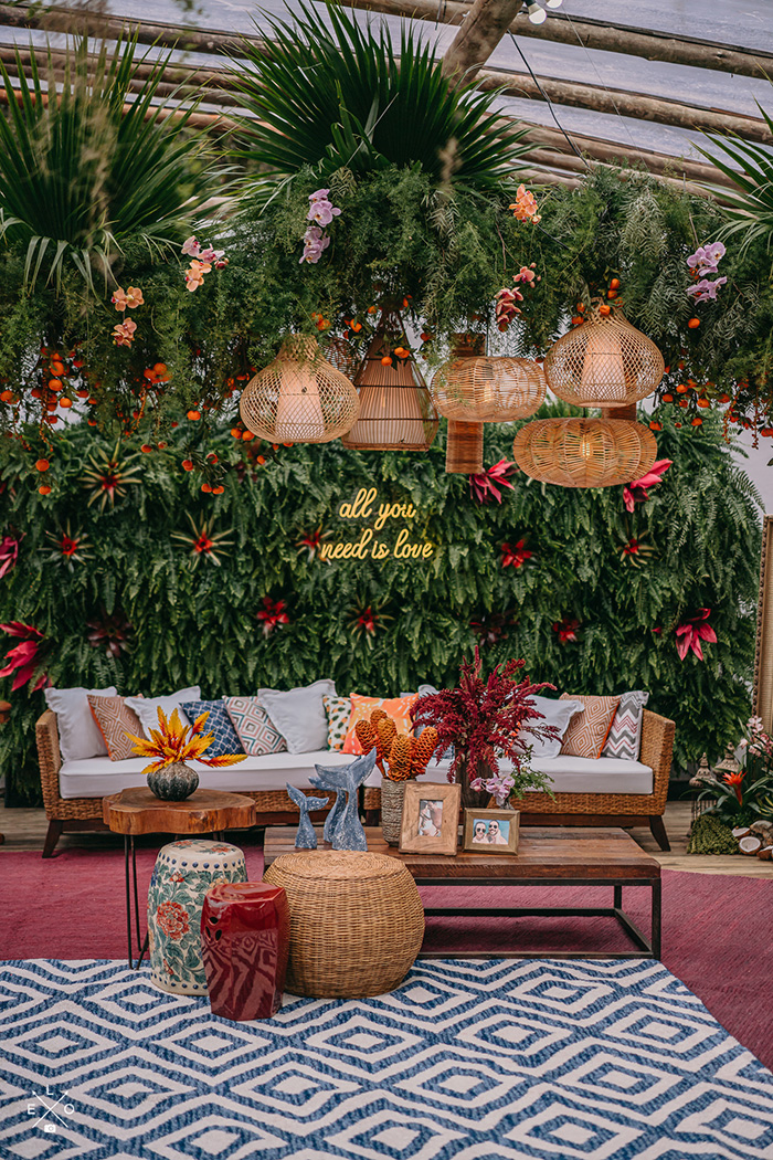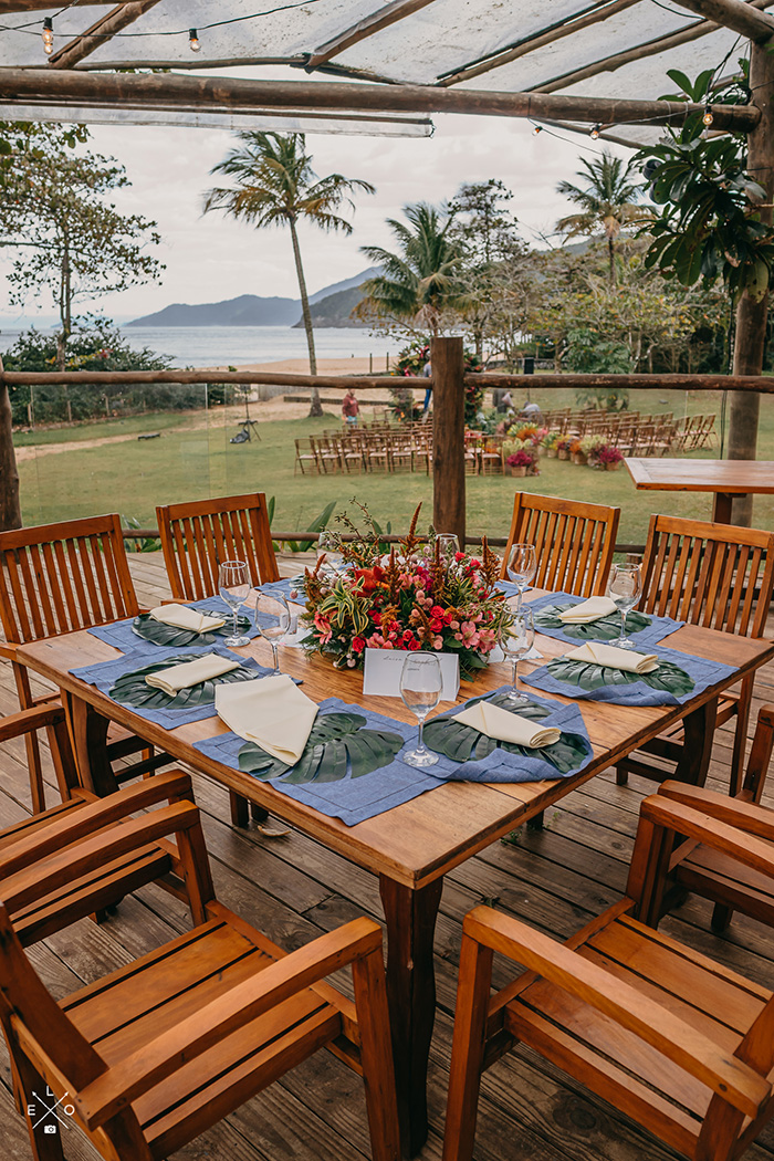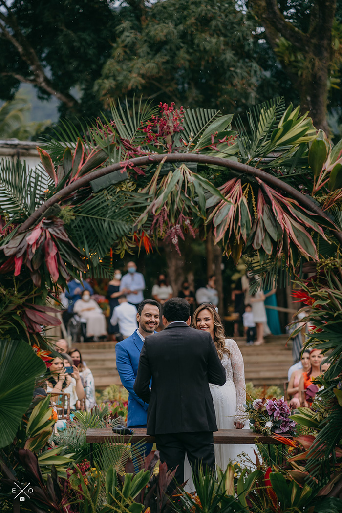 A decoração tropical bem colorida, que ficou perfeita com a natureza ao redor do espaço. A noiva comenta: “Pensamos em todos os detalhes, fizemos questão de escolher todos os fornecedores. E foi surpreendente cada um deles”.