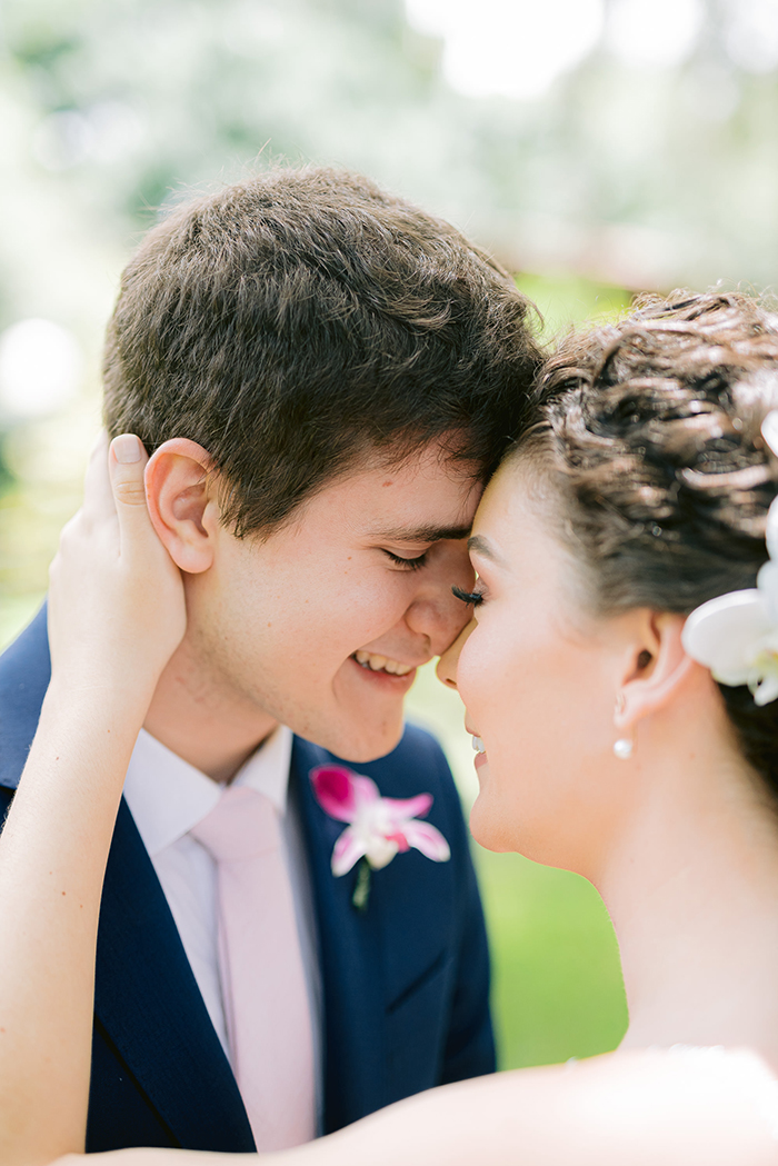 O Tomás estava um charme de traje azul com uma gravata salmão d’O Francês Gravataria, que harmonizou com o buquê de orquídeas da Juliana. A decoração também seguiu os mesmos tons, em rosa claro, pink e tons de azul em objetos da decoração. Estava tudo perfeito!