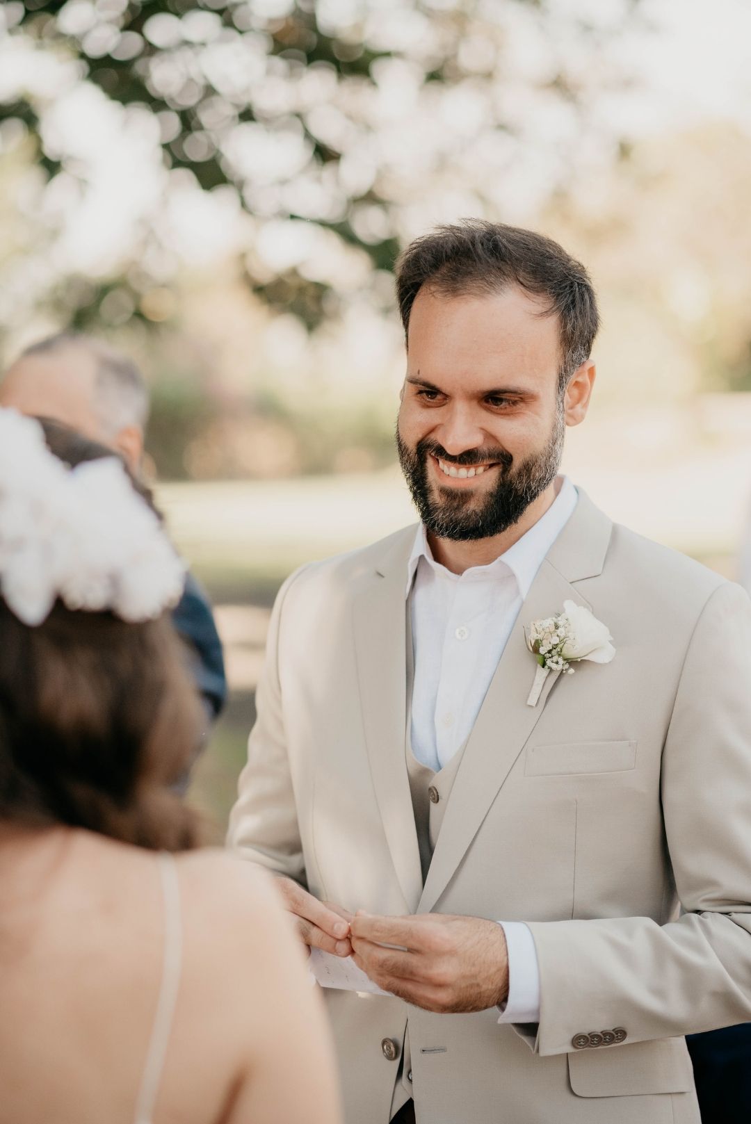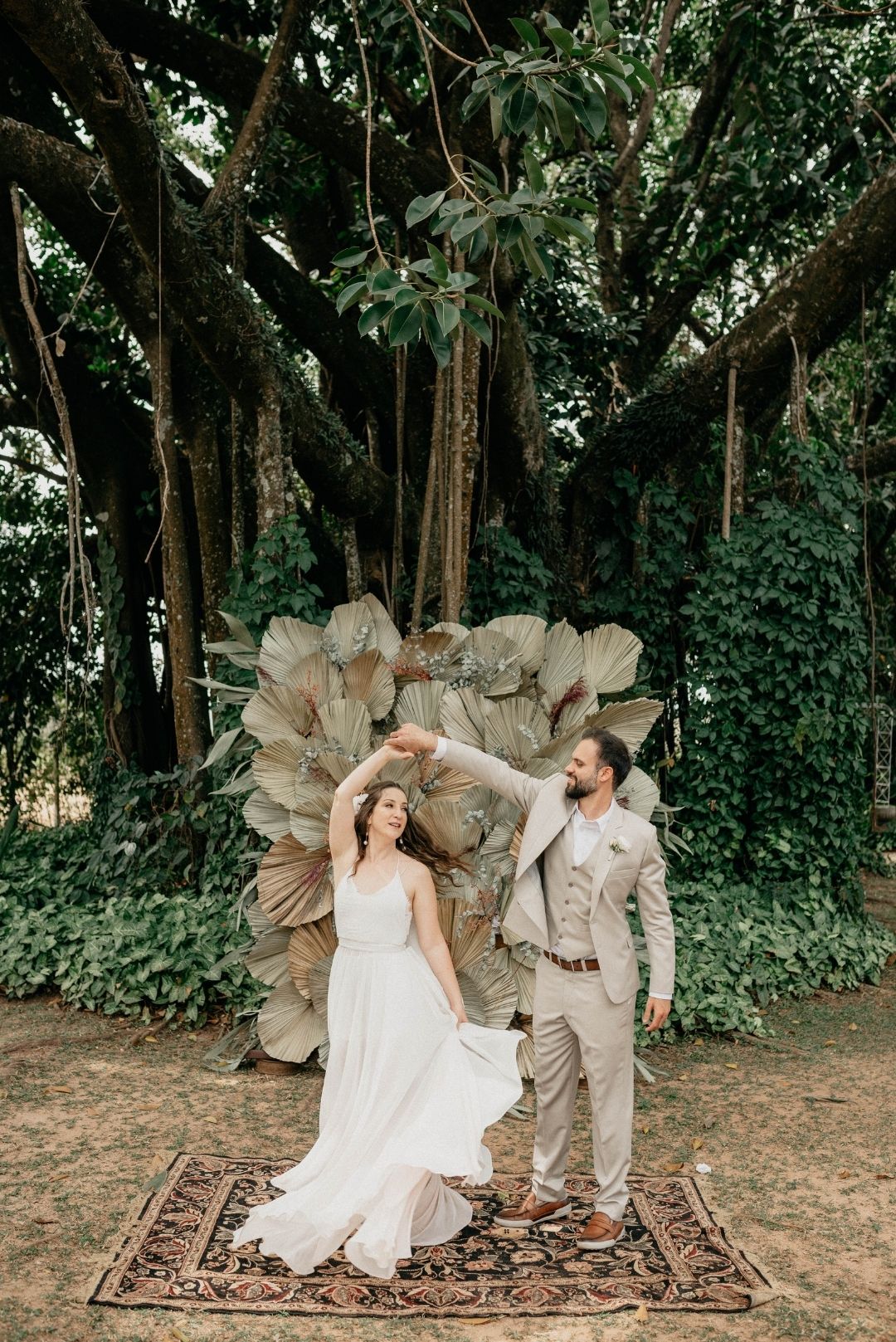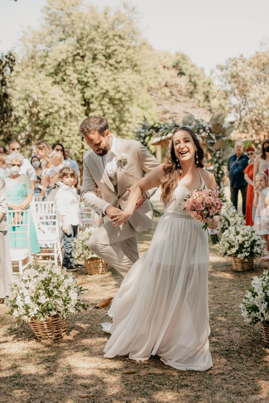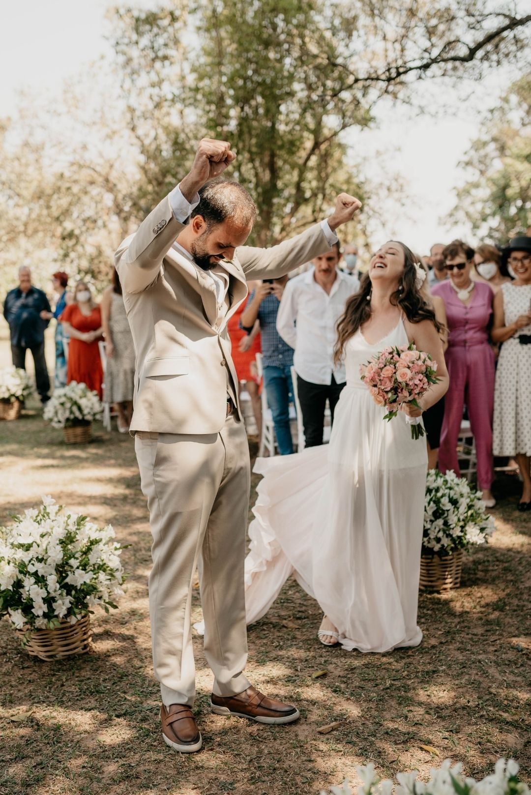 Mariana e Gabriel se casaram em sua própria versão de um casamento não tradicional no interior de São Paulo.
