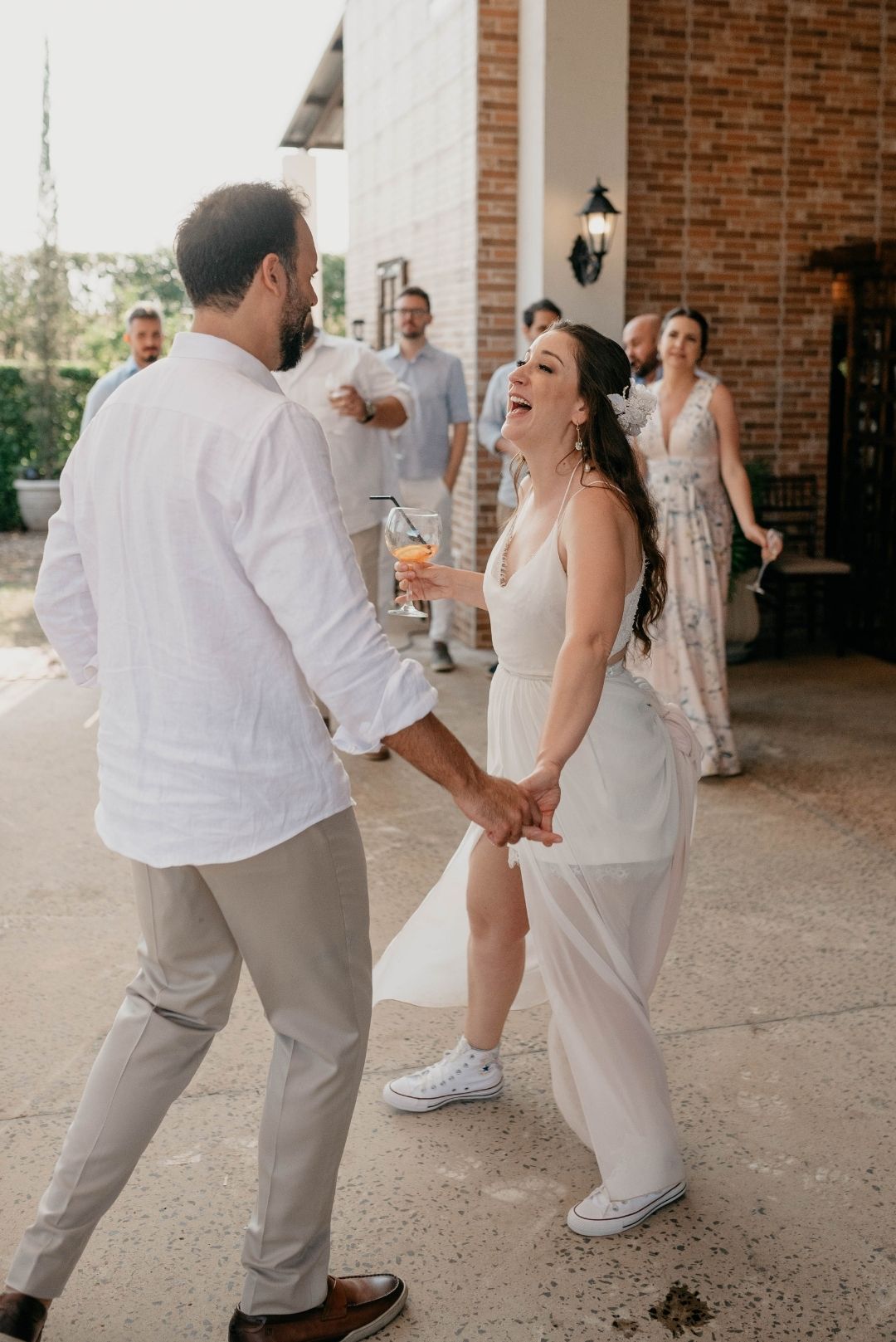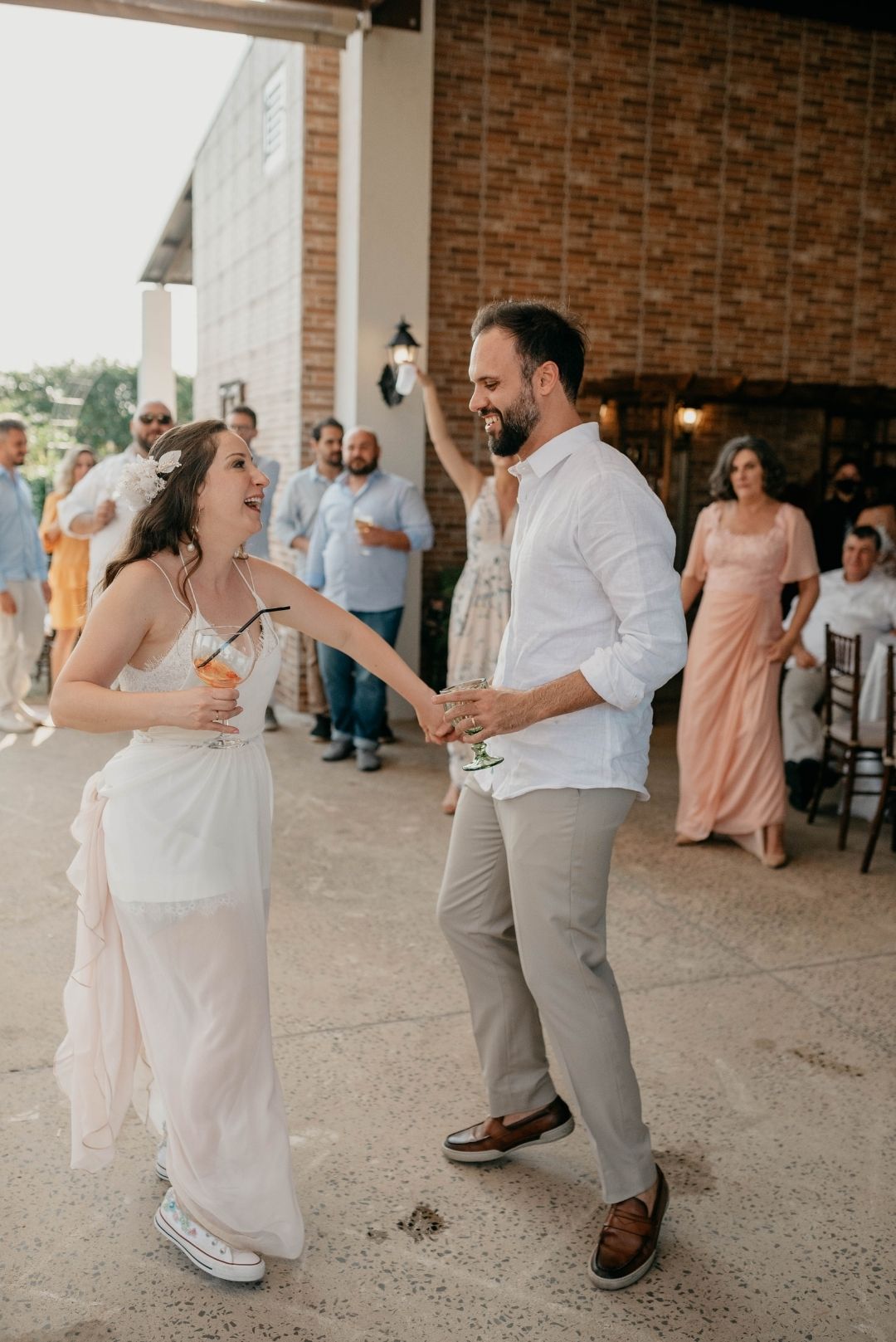 “Não teve muitas tradições, não teve daminha, não teve muita lenta, não teve dança, porque não tem a ver conosco, somos espontâneos e queríamos que as pessoas/padrinhos/parentes se sentissem à vontade, sem seguir “regras”.