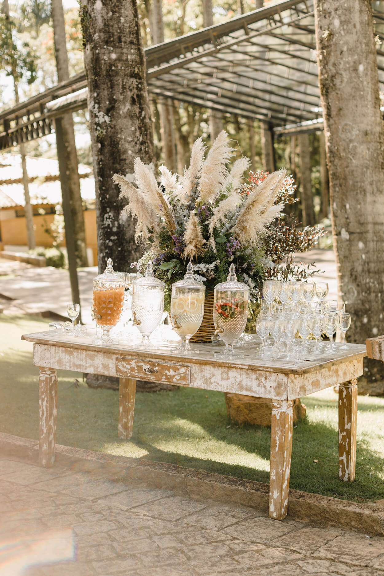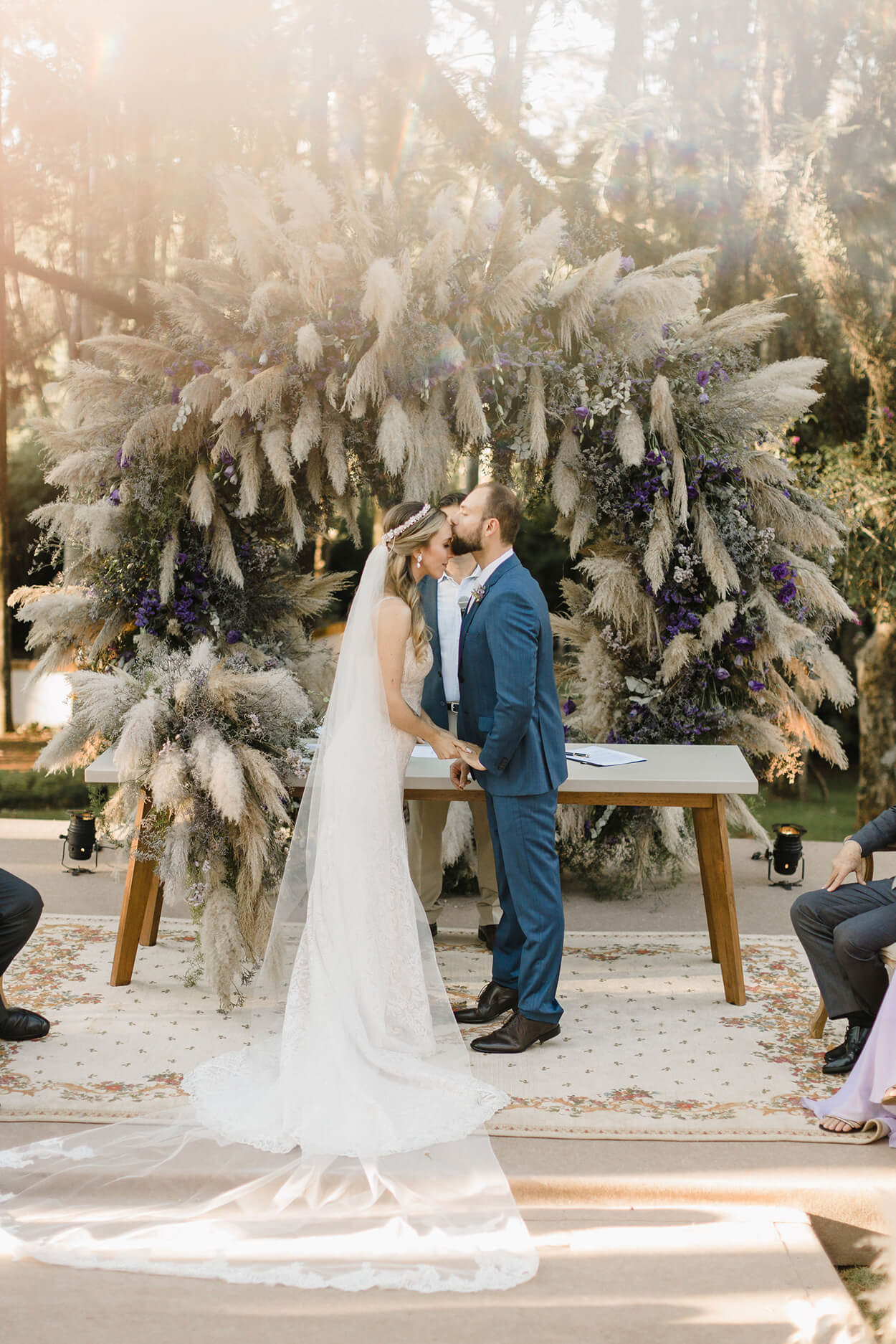 É impossível olhar esse altar com capim dos pampas e não dizer: uau! Quando pensamos no estilo boho, lembramos logo daquela paleta de cores mais suave e delicada.