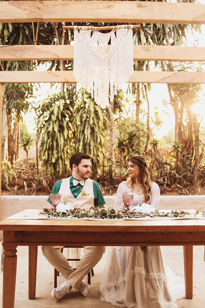 A decoração no estilo boho em tons de verde oliva ficou incrível, somada aos detalhes que os noivos fizeram questão de ter, pois cada cantinho do espaço contava um pouco da história de amor. Ai gente! Isso não é lindo?