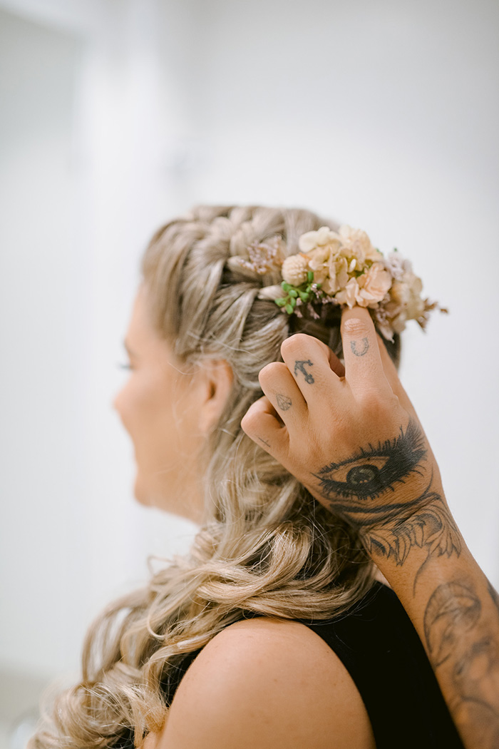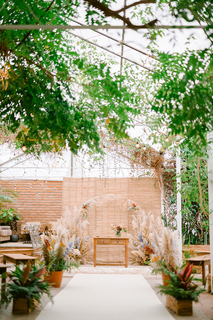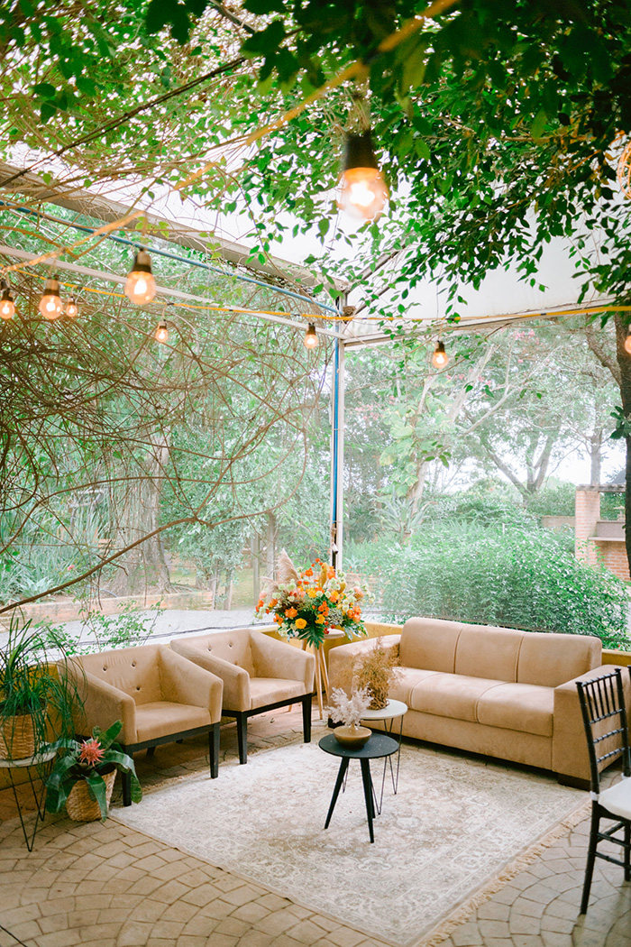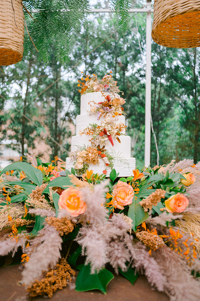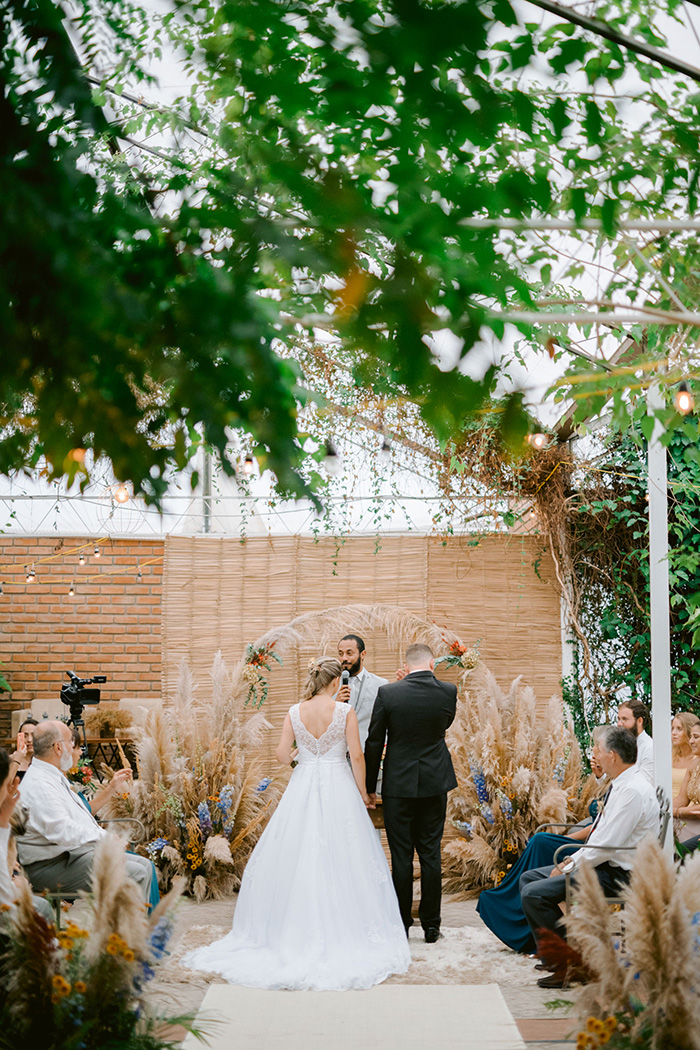 O casal escolheu a cidade de Holambra para reunir a família e os amigos para celebrar o amor. A decoração boho com toque rústico combinou perfeitamente com o ambiente.
