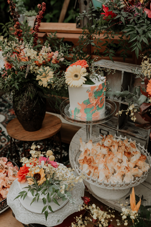 O casamento seguiu um estilo hippie, boho, viajante, cheio de energia boa. Tinha muito terracota, amarelo queimado, menta, laranja e vermelho na paleta de cores escolhida. Aliás amamos a escolha do look bicolor da Villa Roma que o Felipe escolheu para dizer SIM.