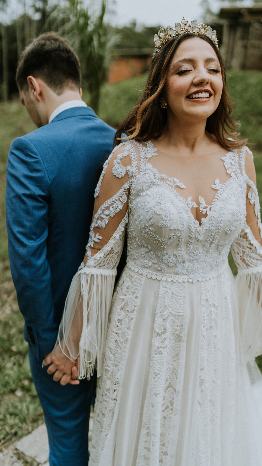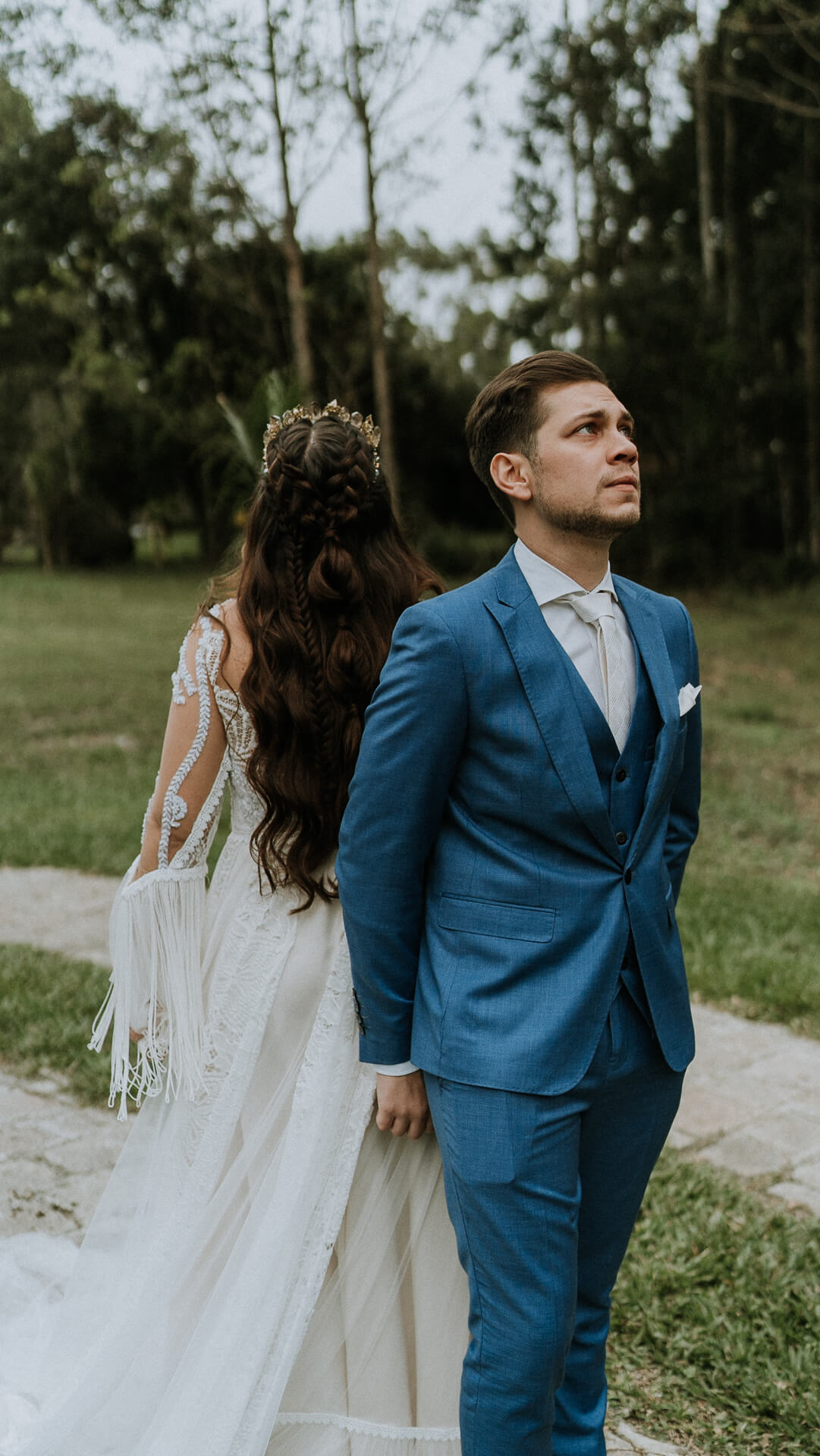 “Ali, o José começou a chorar e não parou mais. Foi muito emocionante a experiência de estar com ele sem nos ver. Eu fiz uma oração (o noivo não conseguia nem falar), e depois falamos como estávamos nos sentindo. Foi único estar só eu e ele (e claro a equipe de foto e vídeo) naquele momento pré-casamento”.