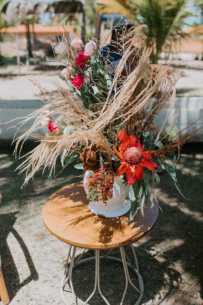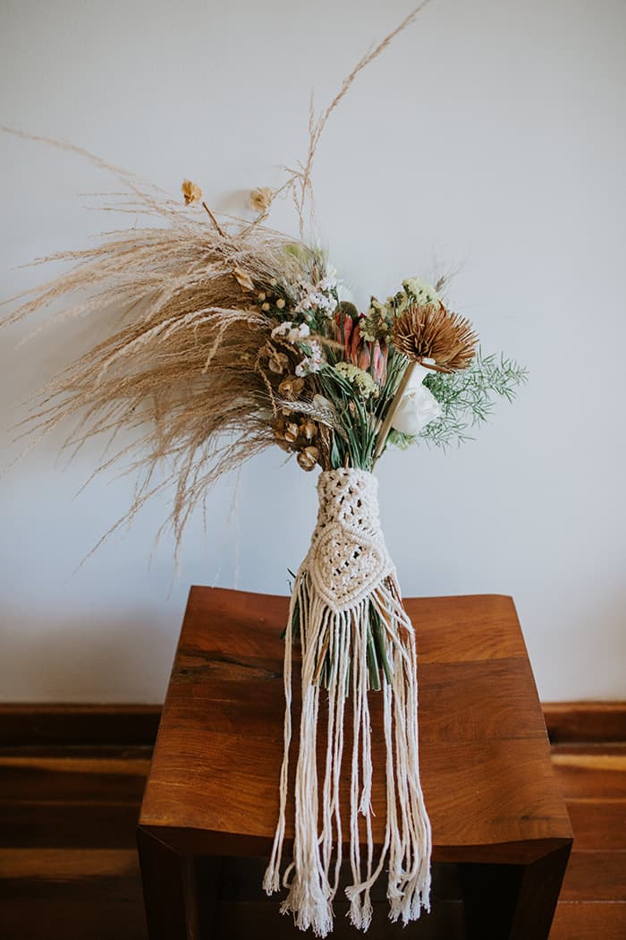 A decoração foi uma misturinha de Barn Wedding com Boho, toda em tons mais pastéis e verdes, com capim dos pampas e muito sol. A Camila e o Matheus criaram as caixinhas das madrinhas num projeto DIY, com muito carinho envolvido.