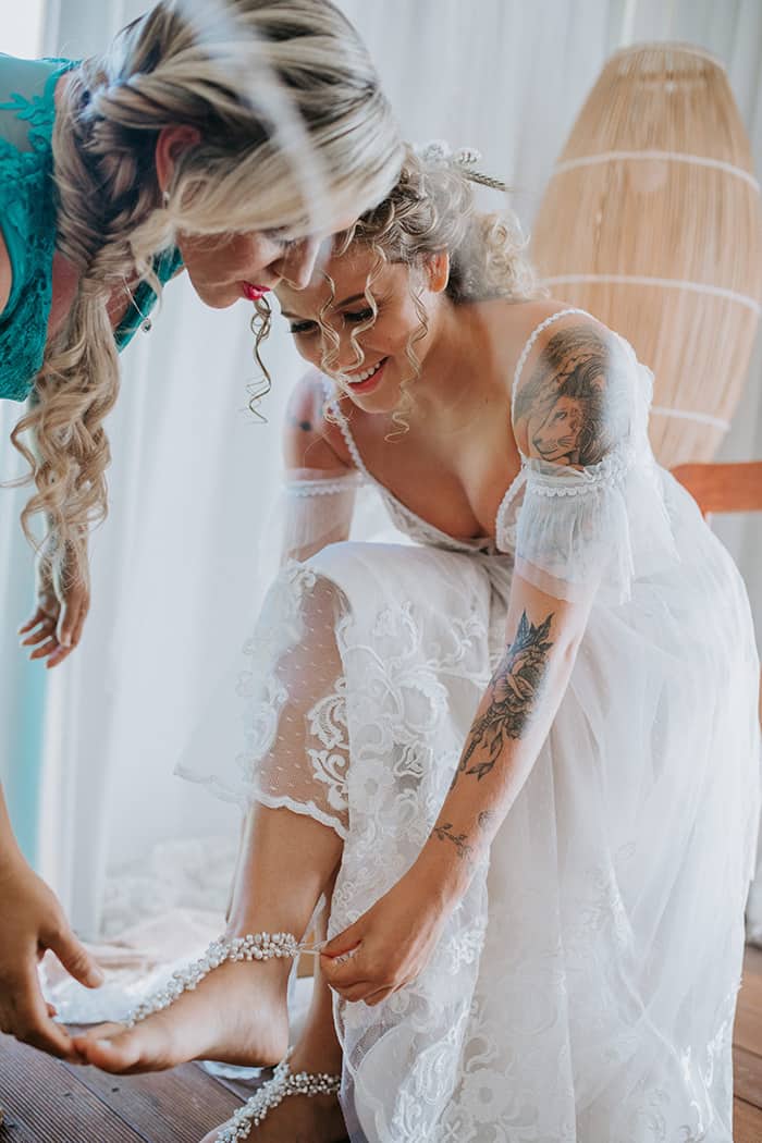 A Camila fez questão de casar com uma pulseira de pé, pois queria dizer SIM sentindo a areia da praia. Uma delicia, né?
