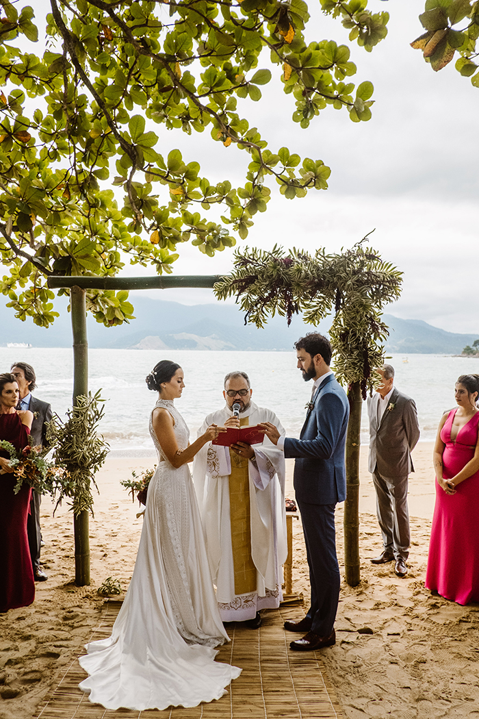 A Camila e o Rodrigo escolheram uma tarde ensolarada em Ilhabela para dizer SIM, num espaço que é super aberto e integrado com a praia e o mar. Esta era a proposta que eles sonhavam.