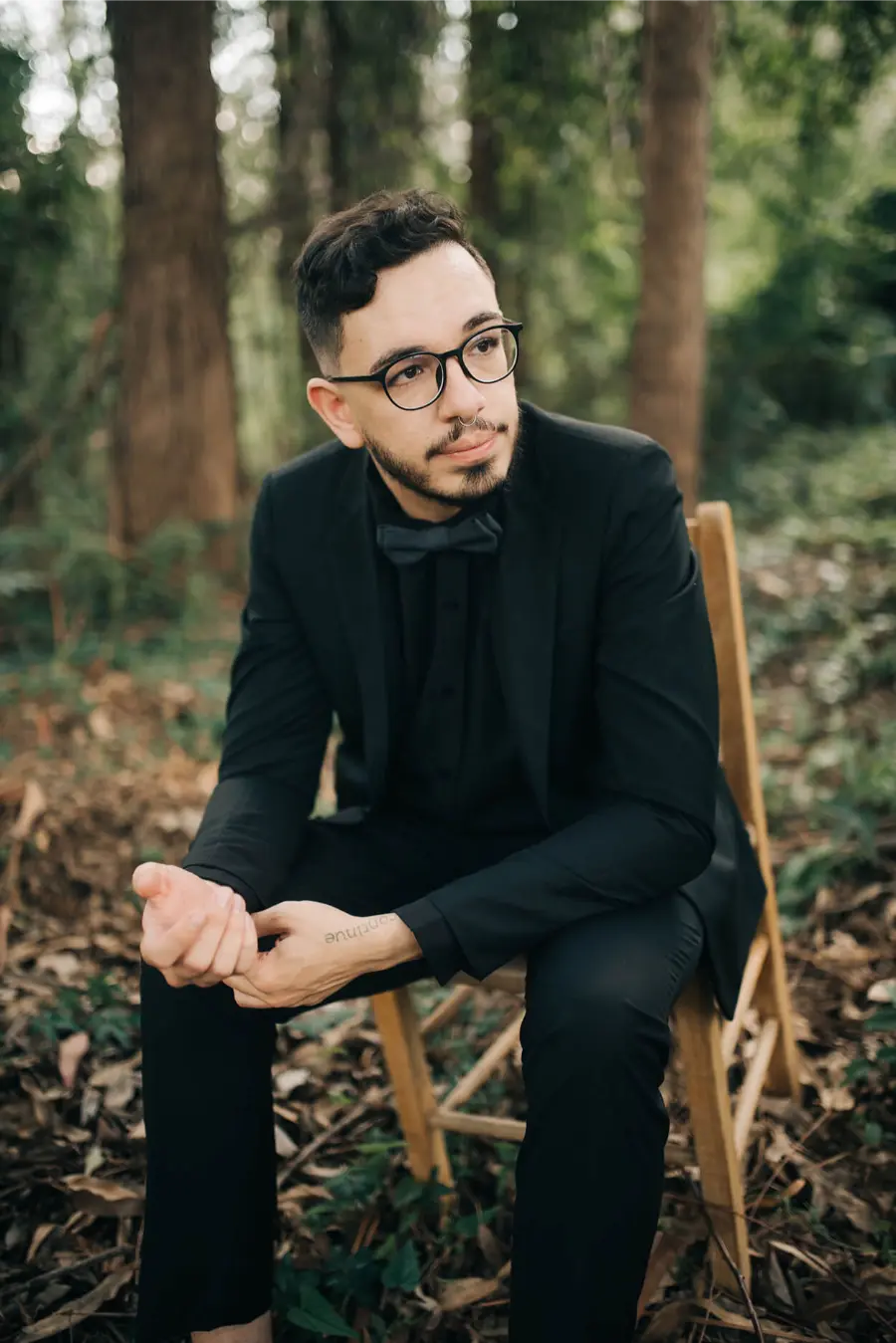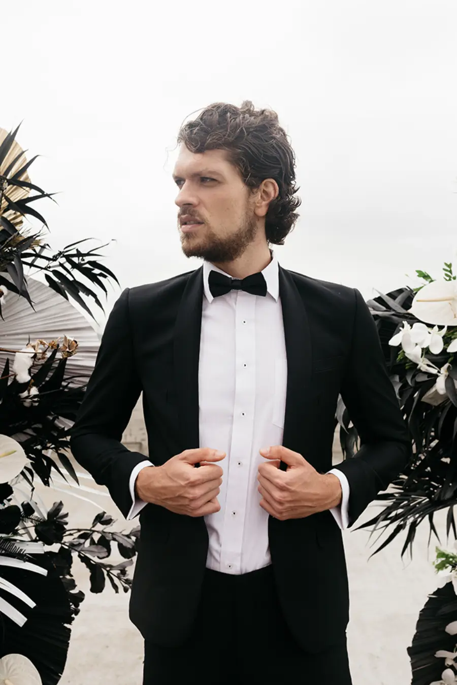 Já o noivo pode seguir pelo caminho mais tradicional, com um smoking preto e camisa branca, ou inovar ao escolher um traje branco acompanhado de gravata preta, invertendo o padrão clássico.