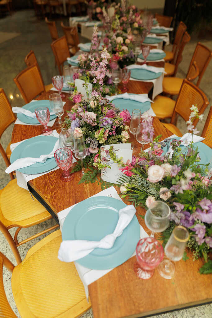 Mas outras cores como rosa pink, dusty rose, coral, lilás e lavanda também são bem-vindas nesse estilo de casamento.