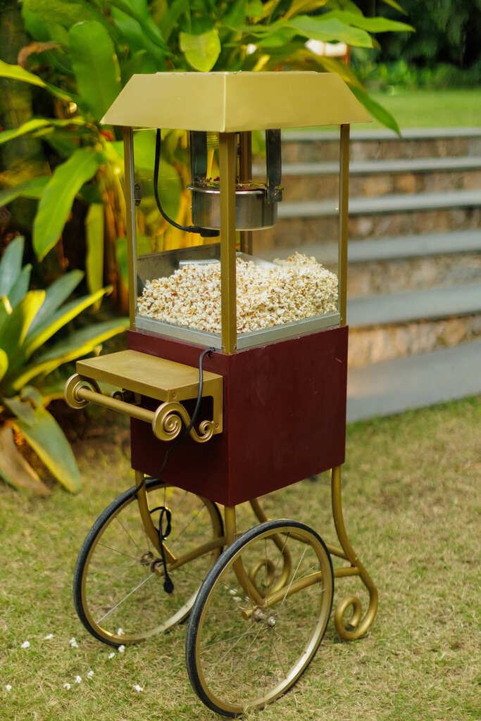 A noiva fez questão de dar um toque vintage à festa com os carrinhos de sorvete e pipoca.