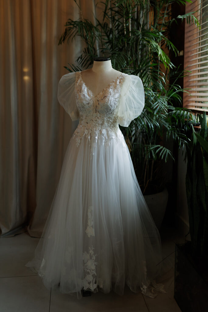 Na verdade, podemos até falar que essa peça é uma releitura moderna dos vestidos da década de 80, quando as mangas bufantes e a cauda longa imperavam.