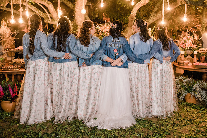 Os dois capricharam em alguns projetos DIY, como o convite dos padrinhos e madrinhas, das daminhas e pajens. A jaqueta que a Bianca usou no dia do casamento para as fotos foi sua mãe que bordou.
