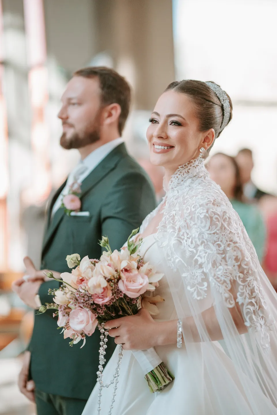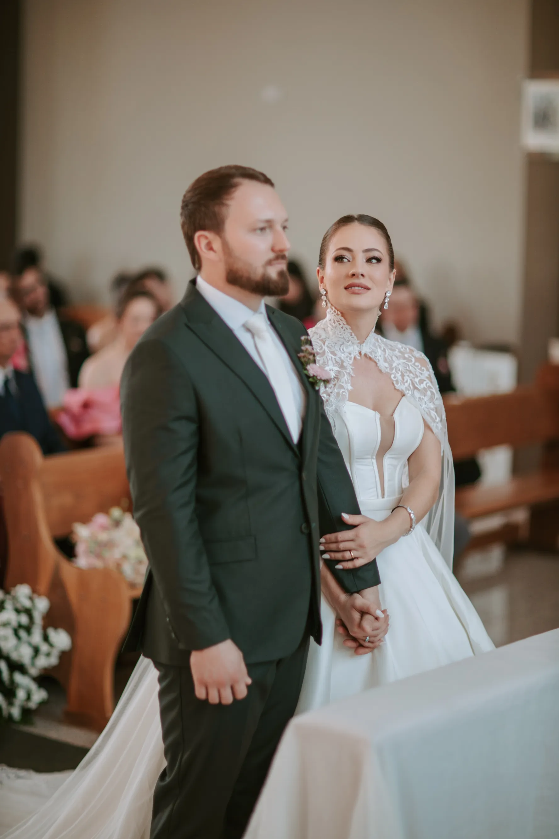Um casamento romântico na igreja se constrói a partir da soma de emoções, estética delicada e escolhas coerentes com a história do casal.