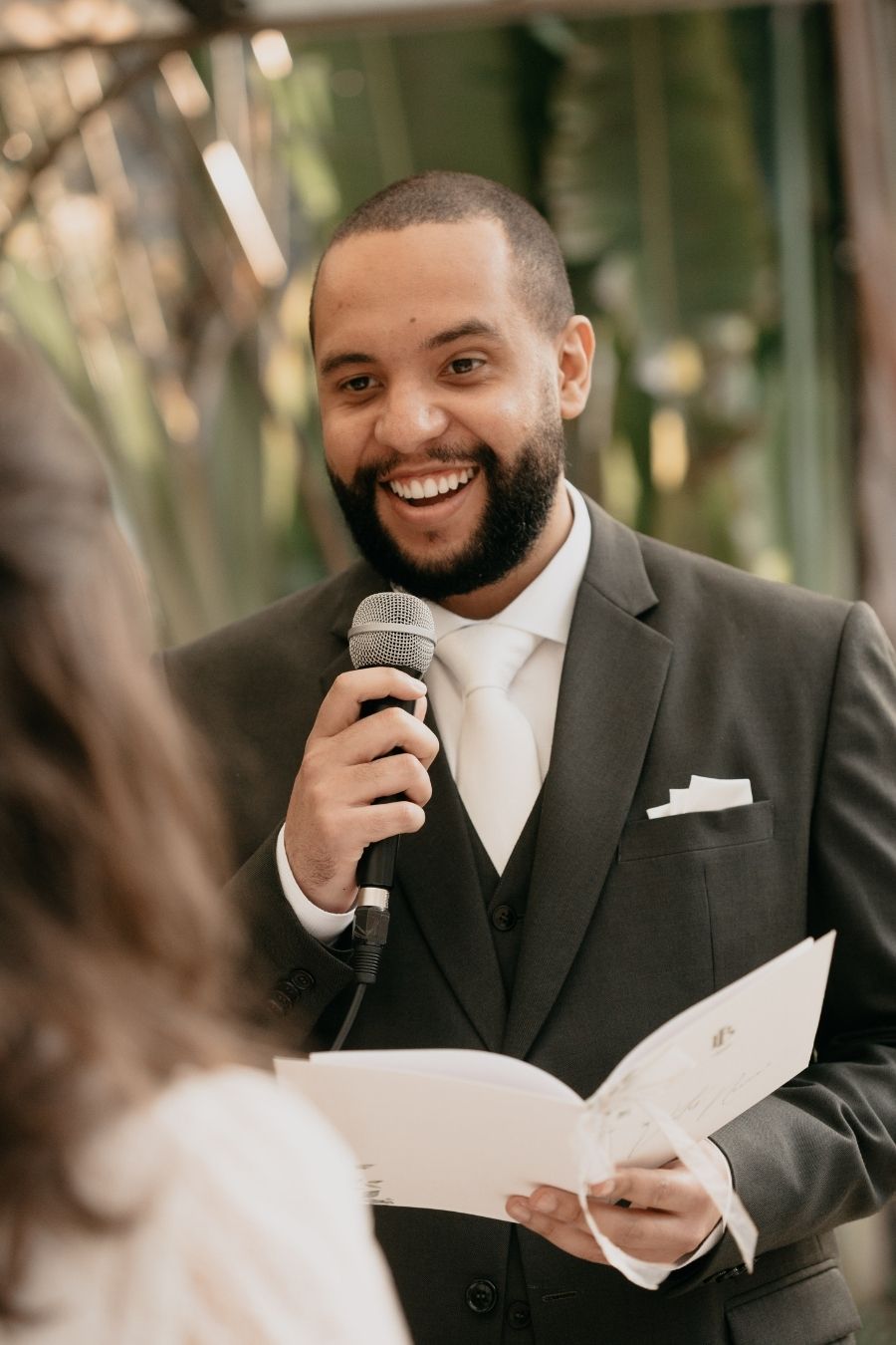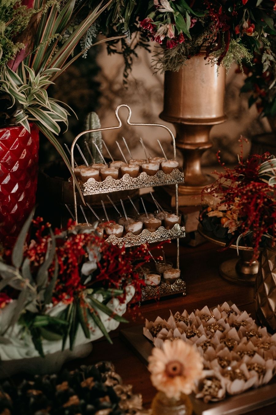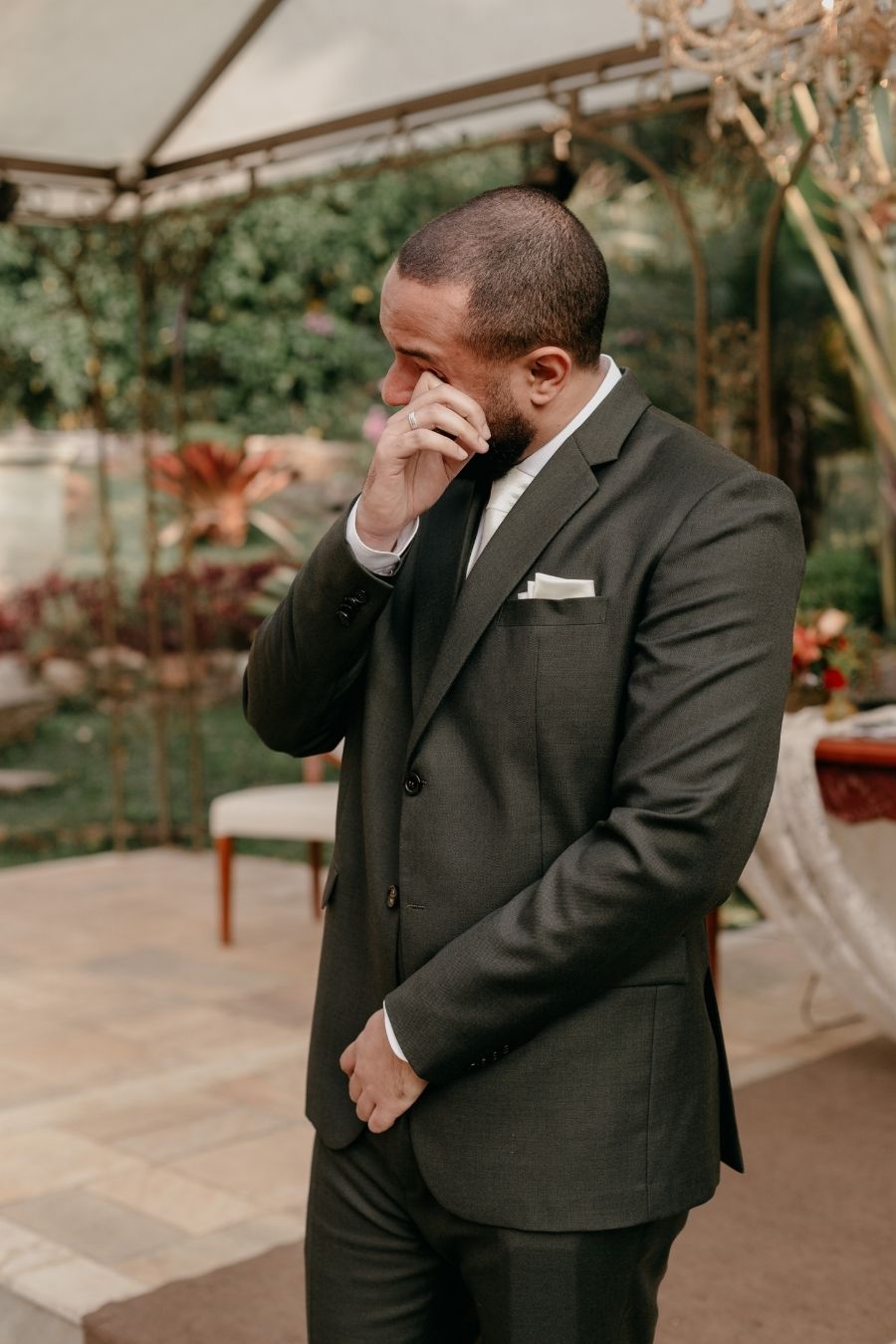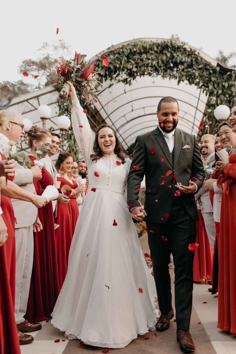 As cores marsala, terracota e cinza foram complementadas com muito verde e a felicidade não só do casal mas de todos os convidados.