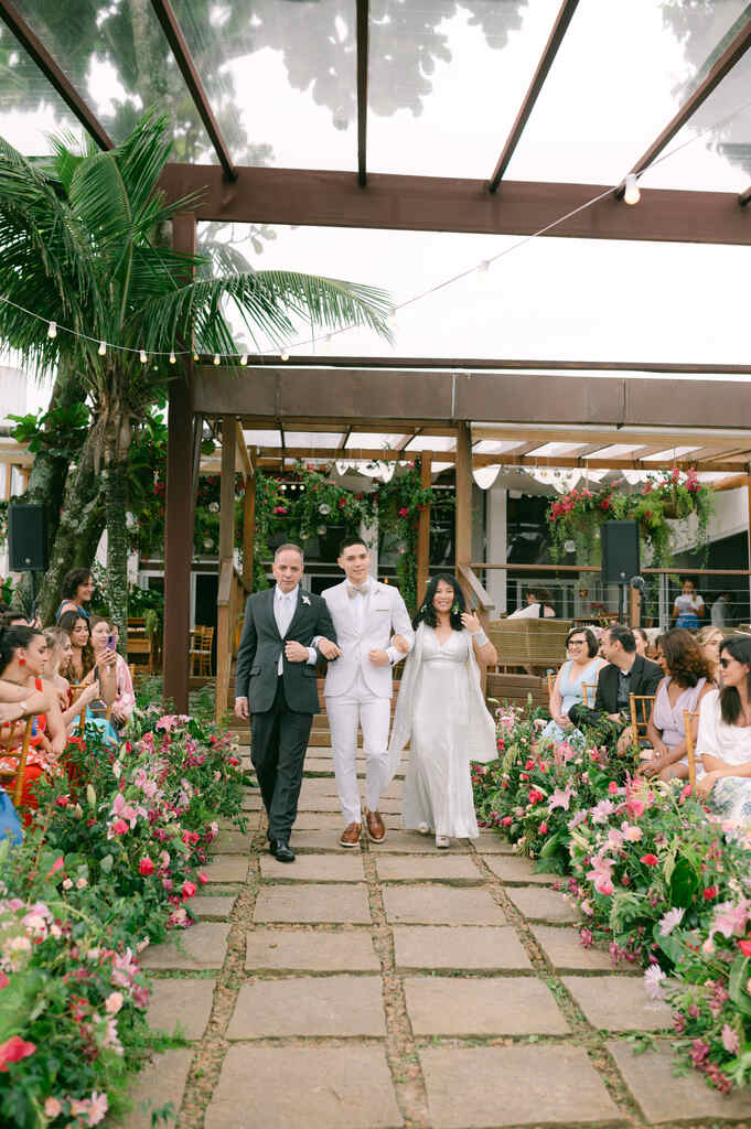 Será que todo casamento na praia precisa seguir uma cartilha com decor tropical e cores vibrantes? Claro que não! E a prova disso é essa festa linda em São Sebatião, litoral de São Paulo.