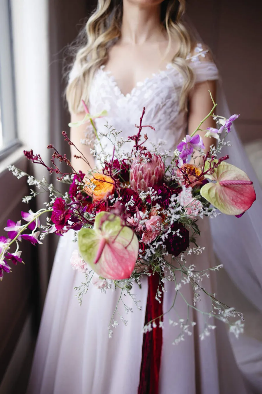 Rosas, peônias, lisianthus, astromélias, tulipas, orquídeas e cravos.