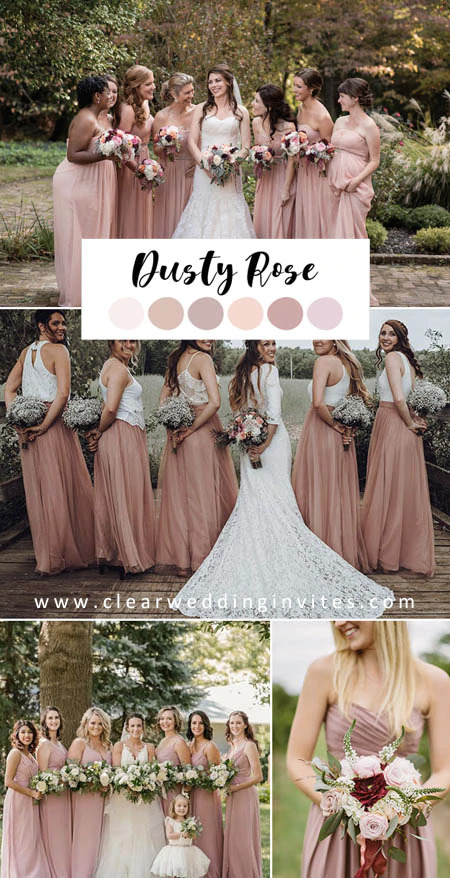 Por ser um tom suave, o rosé combina com todos os estilos de casamentos, principalmente os românticos. A combinação perfeita deve ser composta por uma paleta de cores complementar.