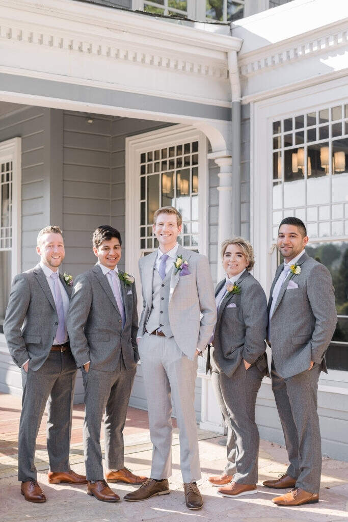 Voltar para o índiceO noivo não precisa vestir um paletó roxo ou usar uma gravata na cor. Pode ser um visual mais neutro mesmo.