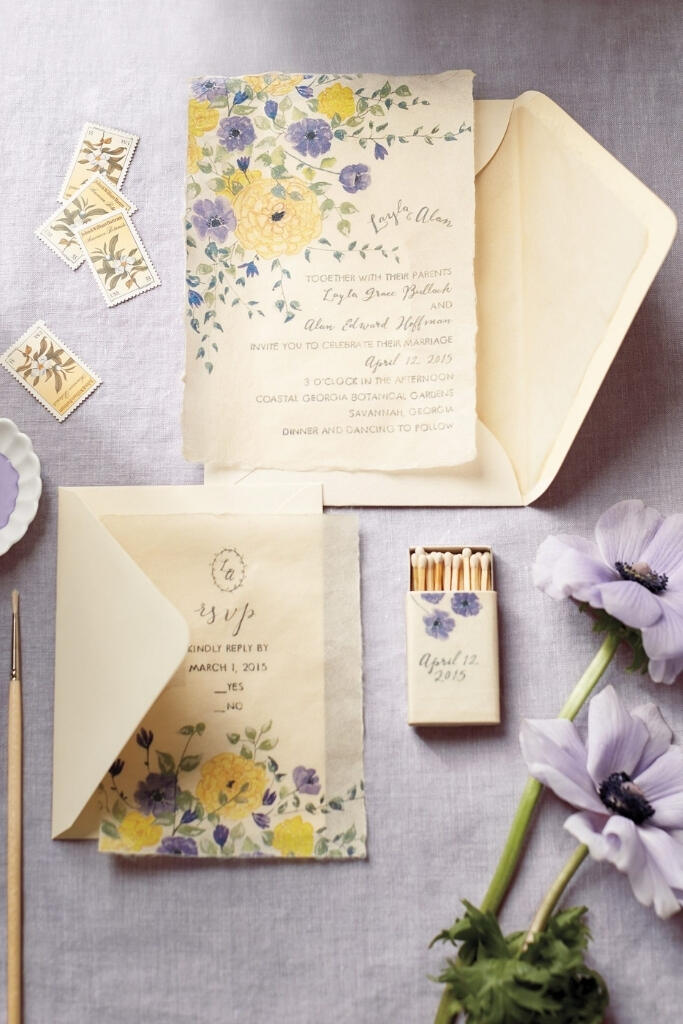 Então, você pode trabalhar a cor de algumas formas: no envelope, na estampa, aquarela ou no lacre de cera.