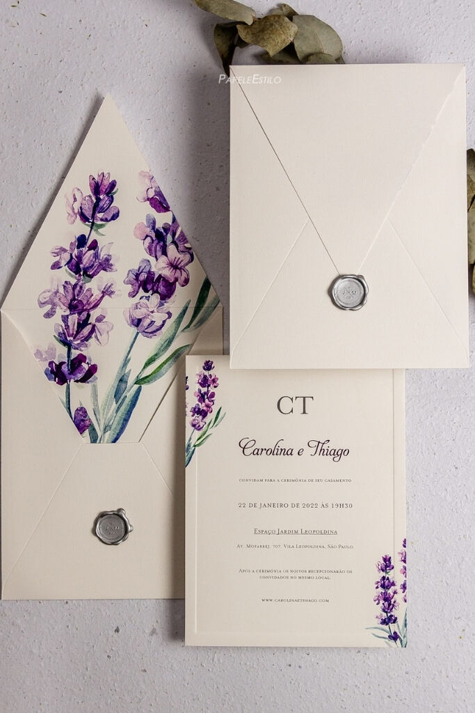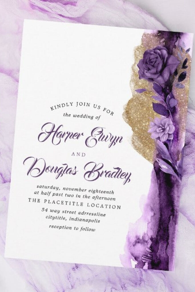 Convite de casamento roxo