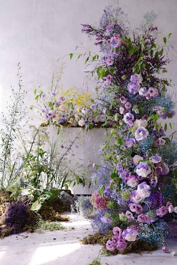 A decoração de casamento roxo pode contar com: