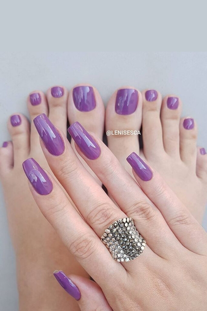 O branquinho nas unhas continua sendo o mais pedido, mas se as noivas usam até as unhas vermelhas, por que não trazer um roxinho?