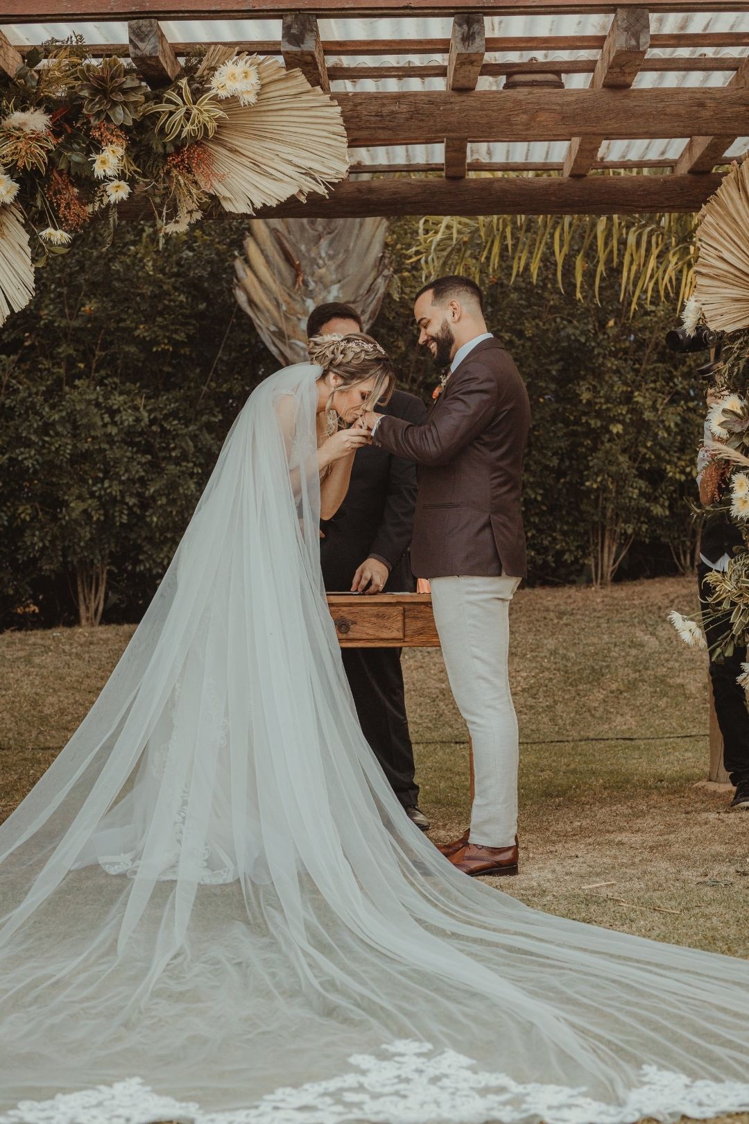 Esse grande dia foi, claro, cheio de momentos especiais. Darfiny e Lucas tem um vínculo muito forte com os avós, por isso eles os queriam em destaque durante a cerimônia. Os avós maternos do noivo entraram com as alianças e a avó paterna com a imagem de Nossa Senhora. A noiva escolheu homenagear sua falecida avó com um broche, contendo a foto da matriarca, preso em seu vestido.