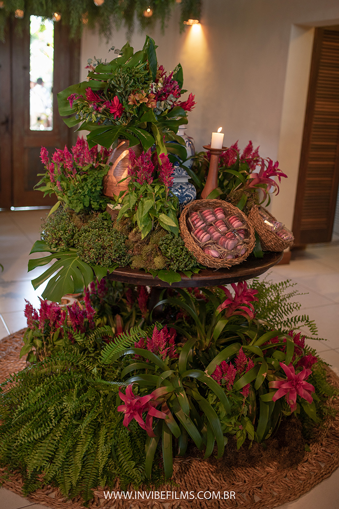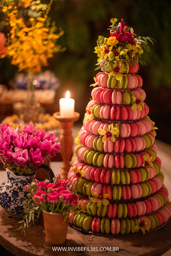 Destaque especial para a mesa de bolo e doces, que contou com uma deliciosa torre de macarons da Macarons Glace, que também foi a responsável pelas lembrancinhas desse dia inesquecível!