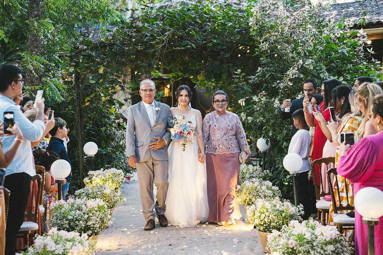 João Pessoa é uma cidade agraciada pela beleza praiana, mas é inegável que os seus campos também reservam belas paisagens. Pensando nisso, Germana e Paulo decidiram oficializar a união em uma cerimônia meiga, cercada pela natureza.