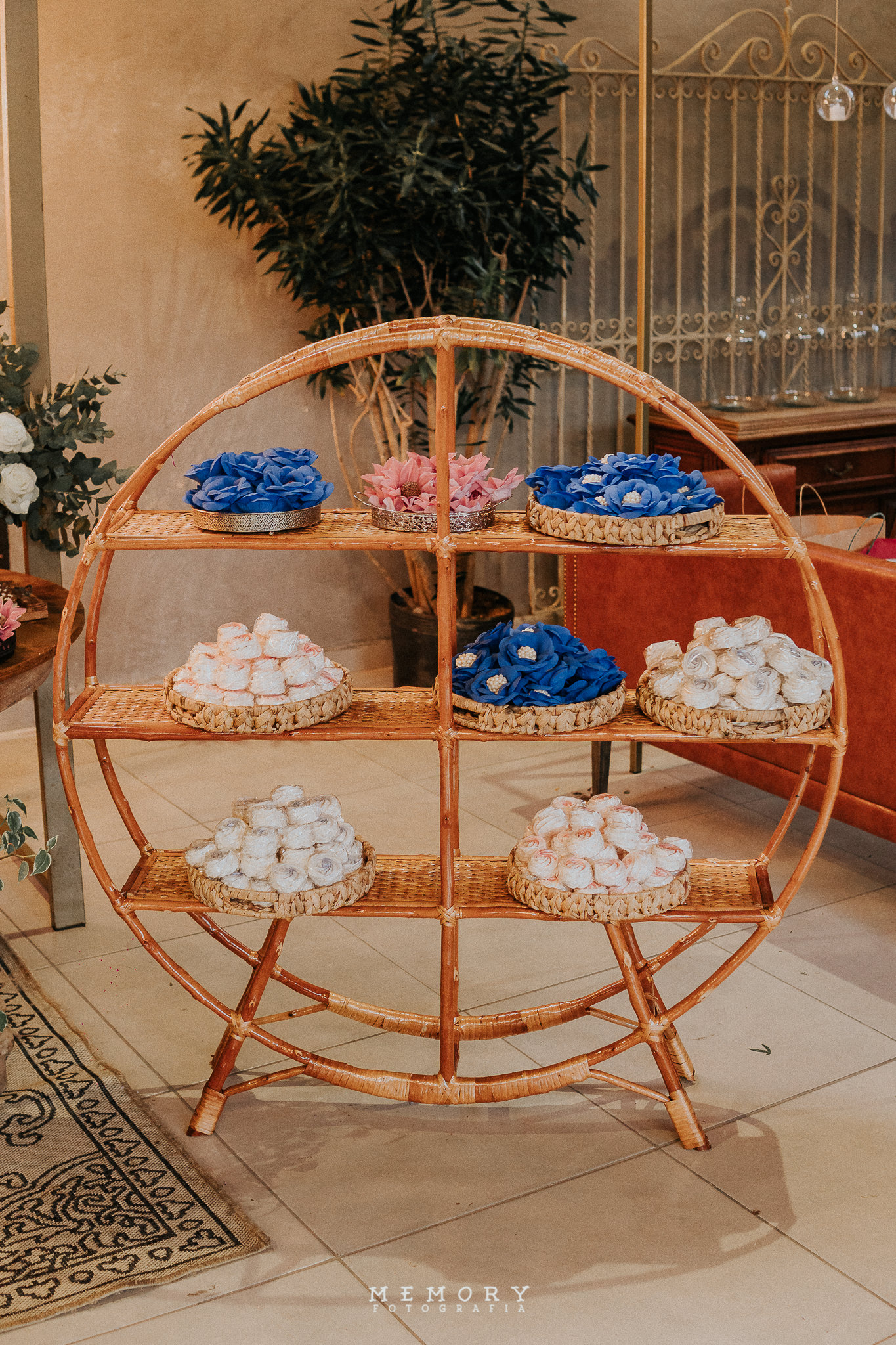 A decoração foi criada com a carinha do casal, num estilo rústico e romântico e com as cores azul serenity. Essa união, e o look dos noivos, criou uma atmosfera única que expressava perfeitamente a Daiana e o Niedson.