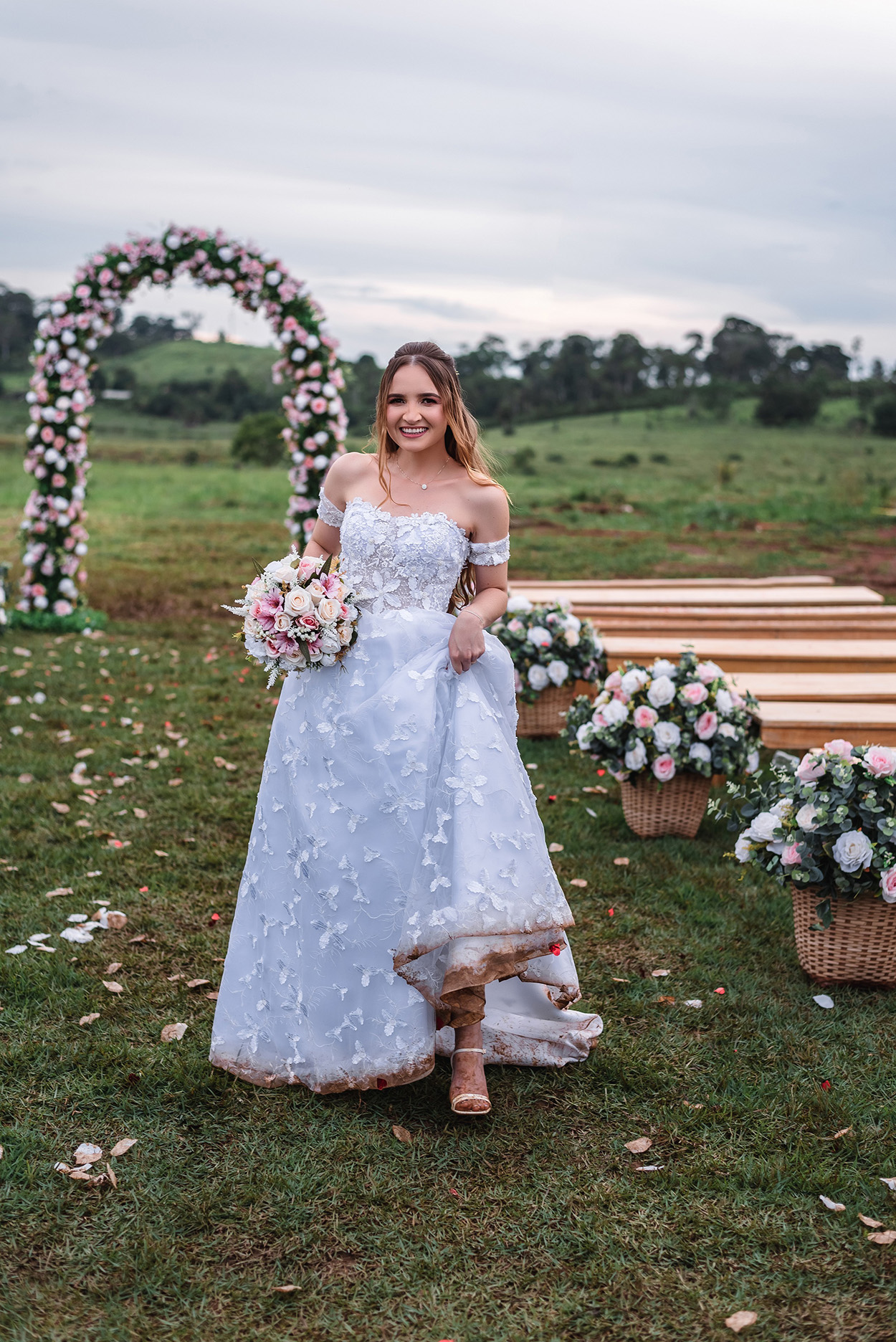 Isso foi o grande diferencial desse dia, a Renata comenta: “Nosso casamento foi emocionante, como todos são. O diferencial, acredito, estava na simplicidade e no carinho com que planejamos e recebemos nossa família e nossos amigos. O churrasco, as frutas, os abraços, a lama, tudo fazia daquele momento um momento especial, carinhoso e inesquecível”.