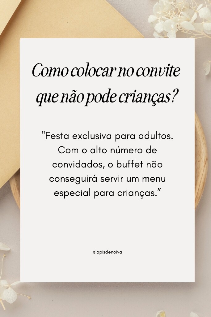 - “Pedimos desculpas e a compreensão de todos, mas o casamento e a festa serão apenas para adultos.”