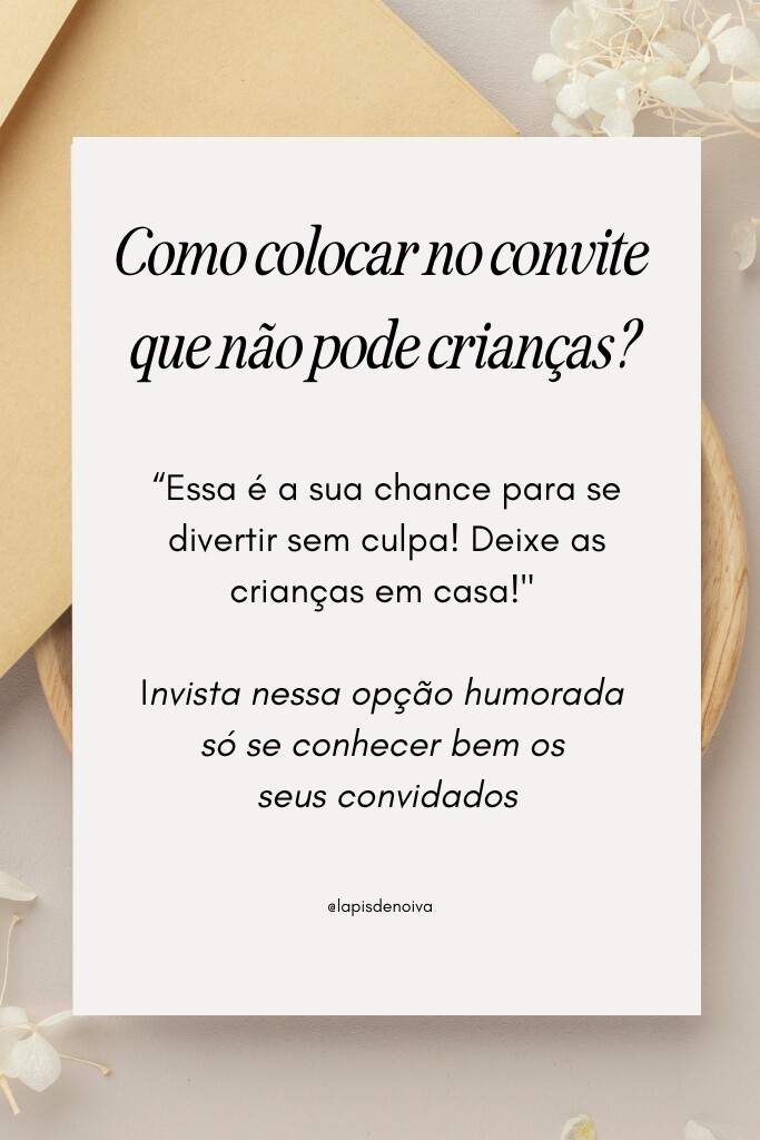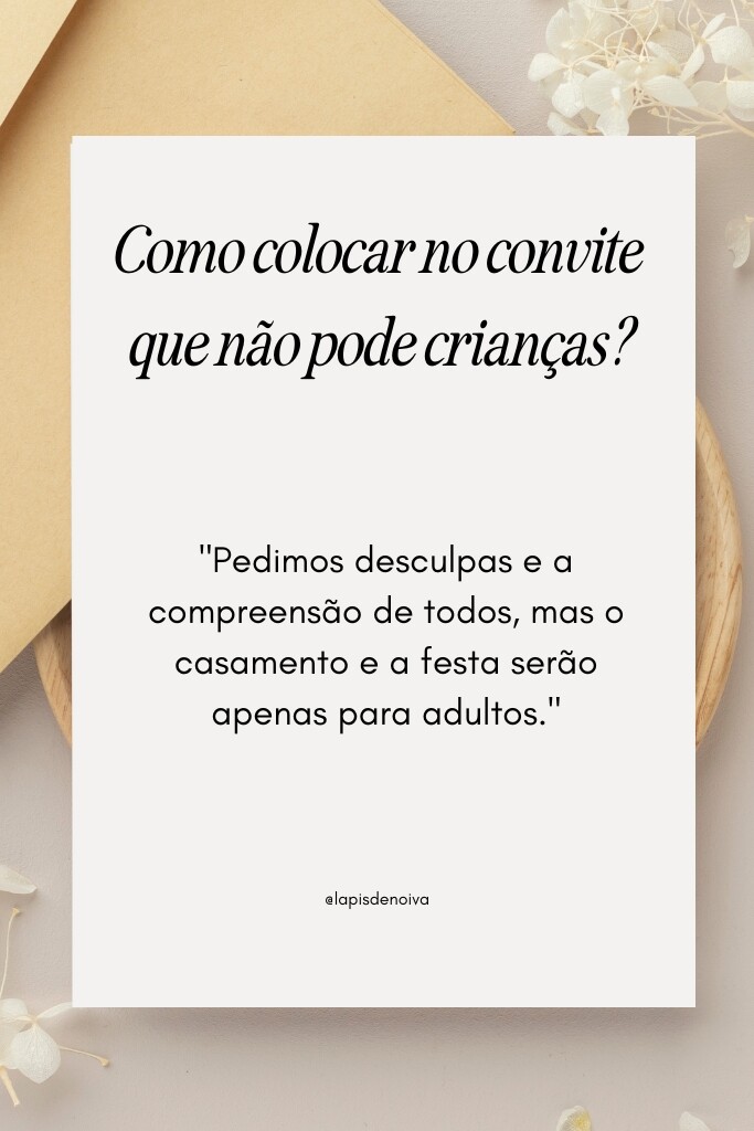 - “Pedimos desculpas e a compreensão de todos, mas o casamento e a festa serão apenas para adultos.”